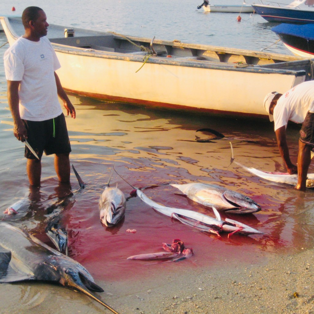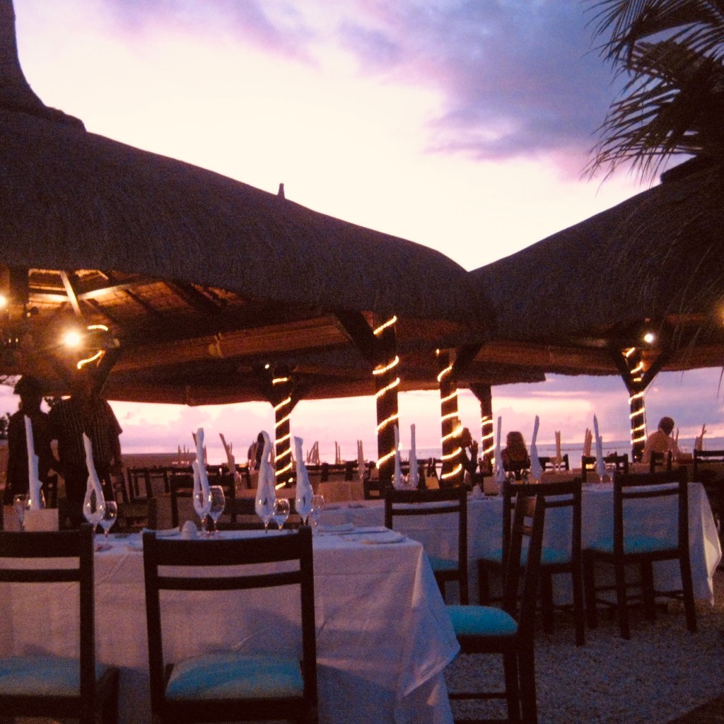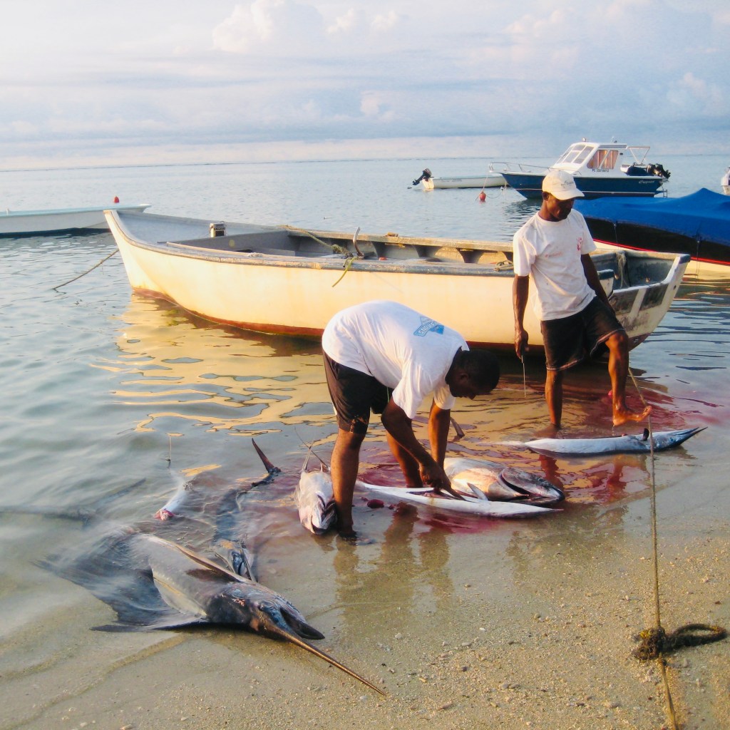 Zurück in La Preneuse spazieren wir am Strand entlang. Einige Fischer sind gerade von ihrer Tour zurückgekehrt und nehmen im Sand die Fische aus. Eine Weile stehen wir da und schauen ihnen zu. Auf einer Terrasse mit Meerblick sehen wir festlich gedeckte Tische im Hotel „Les Sirandanes“. Spontan fragen wir nach und tatsächlich ist noch ein Tisch für zwei verfügbar. Gebucht!