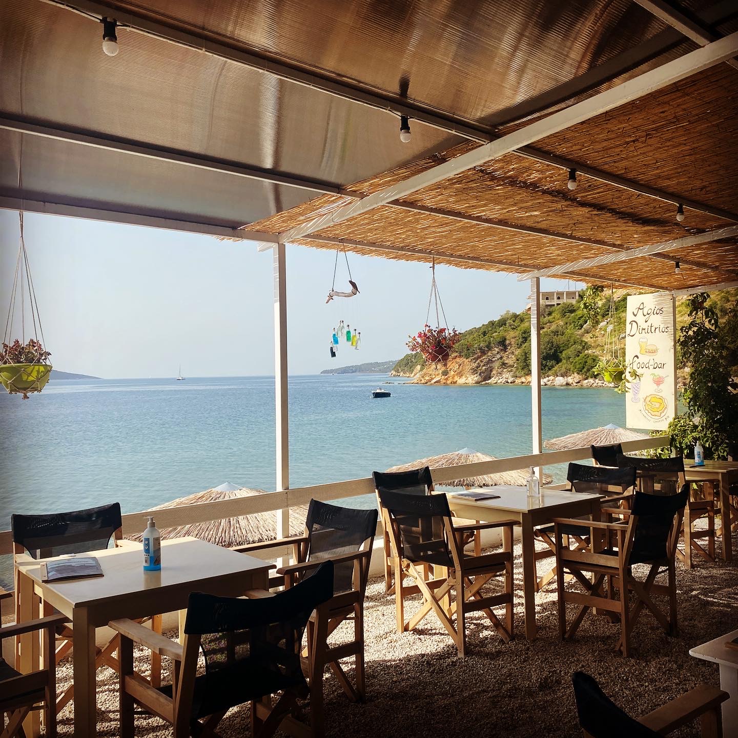 Einen weiterer, etwas feineren Kiesstrand gibt es in Agios Dimitrios. Auch hier ganz am Ende ein nettes Lokal, in dem wir auch öfter mit traumhaftem Meerblick gefrühstückt haben.