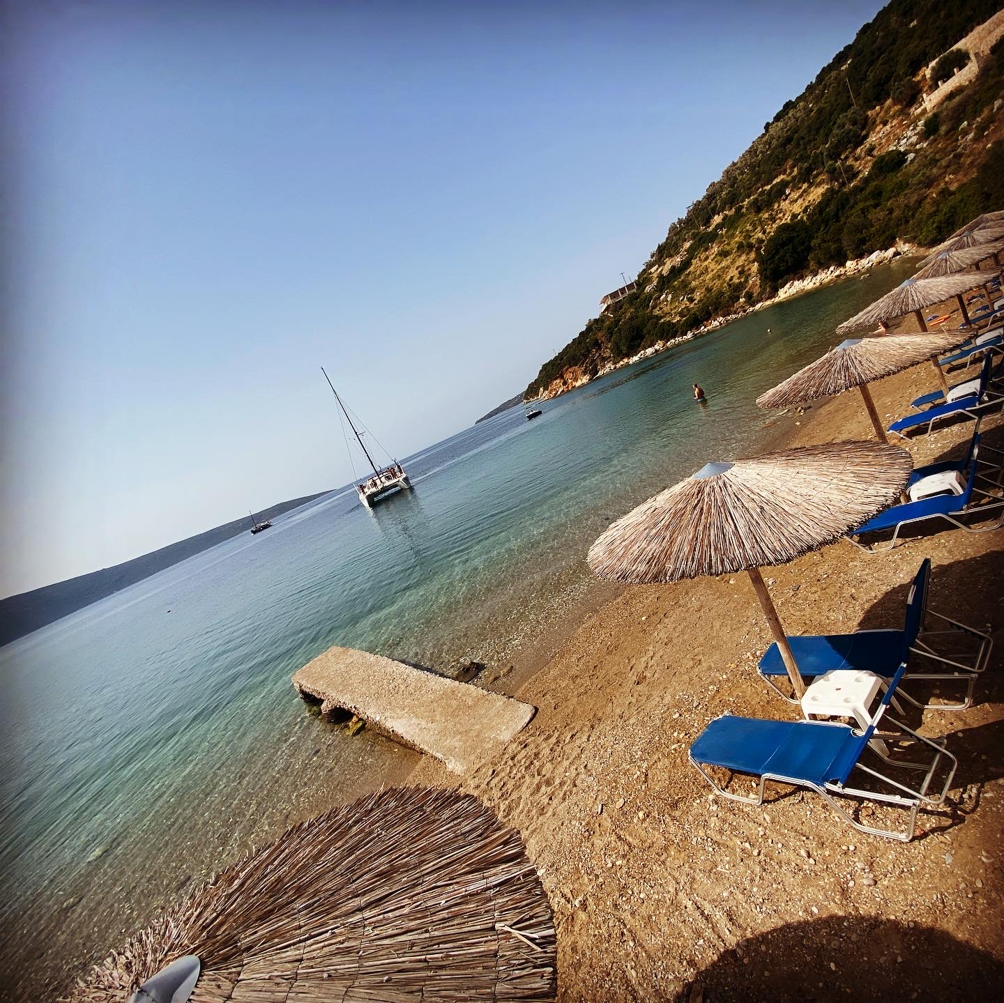Mein Tipp für einen tollen Strandtag. Agios Dimitrios. Hier gibt es keinen Sandstrand, sondern dicke Kieselsteine. Super für die Kinder zum Schnorcheln. Frühstück oder Lunch mit unbeschreiblich schönem Blick auf die türkise Bucht, gesäumt von grünen Hängen. Weil es eben keinen Sandstrand gibt, ist hier immer weniger los.