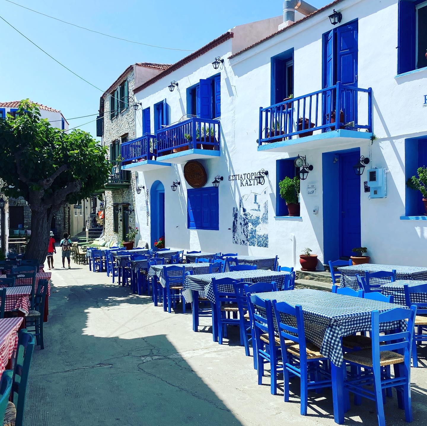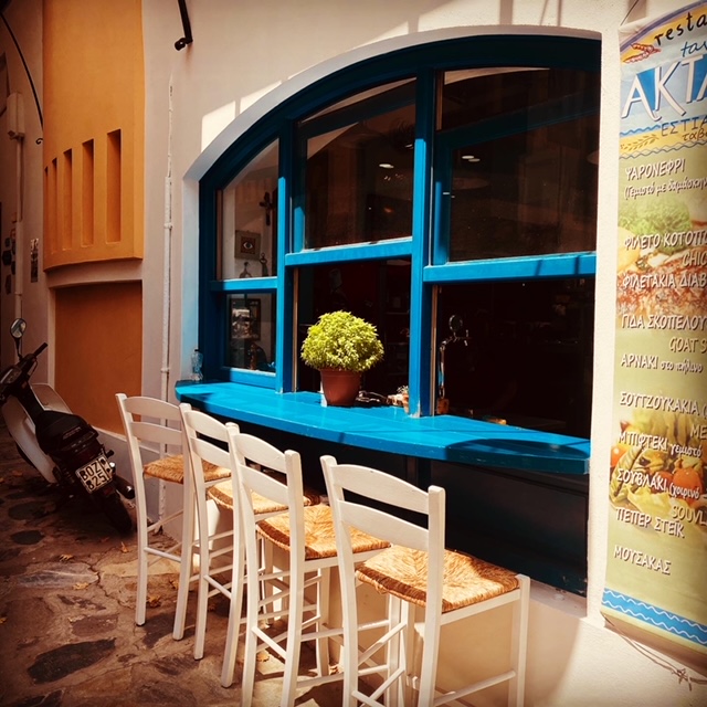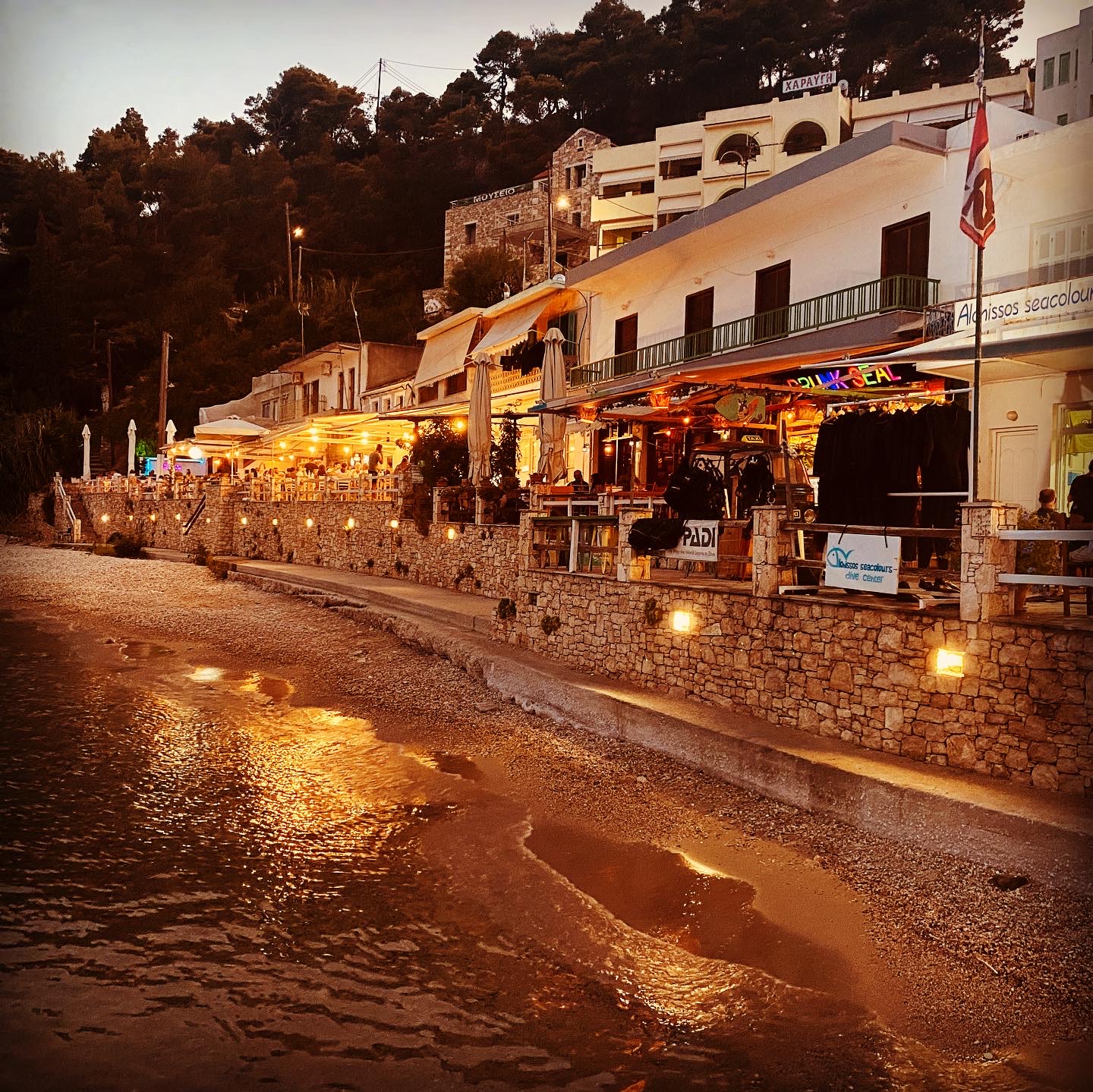 Ein vormals verschlafener Fischerort, Steni Vela hat heute plötzlich stylische Cafés entlang der kleinen Hafenpromenade, die auch wir natürlich bestaunt und genossen haben. Noch in 2019 gab es gerade einmal zwei, einfache Restaurants mit köstlichstem, frischem Fisch hier, wo wir mittags oft ganz alleine bewirtet wurden.