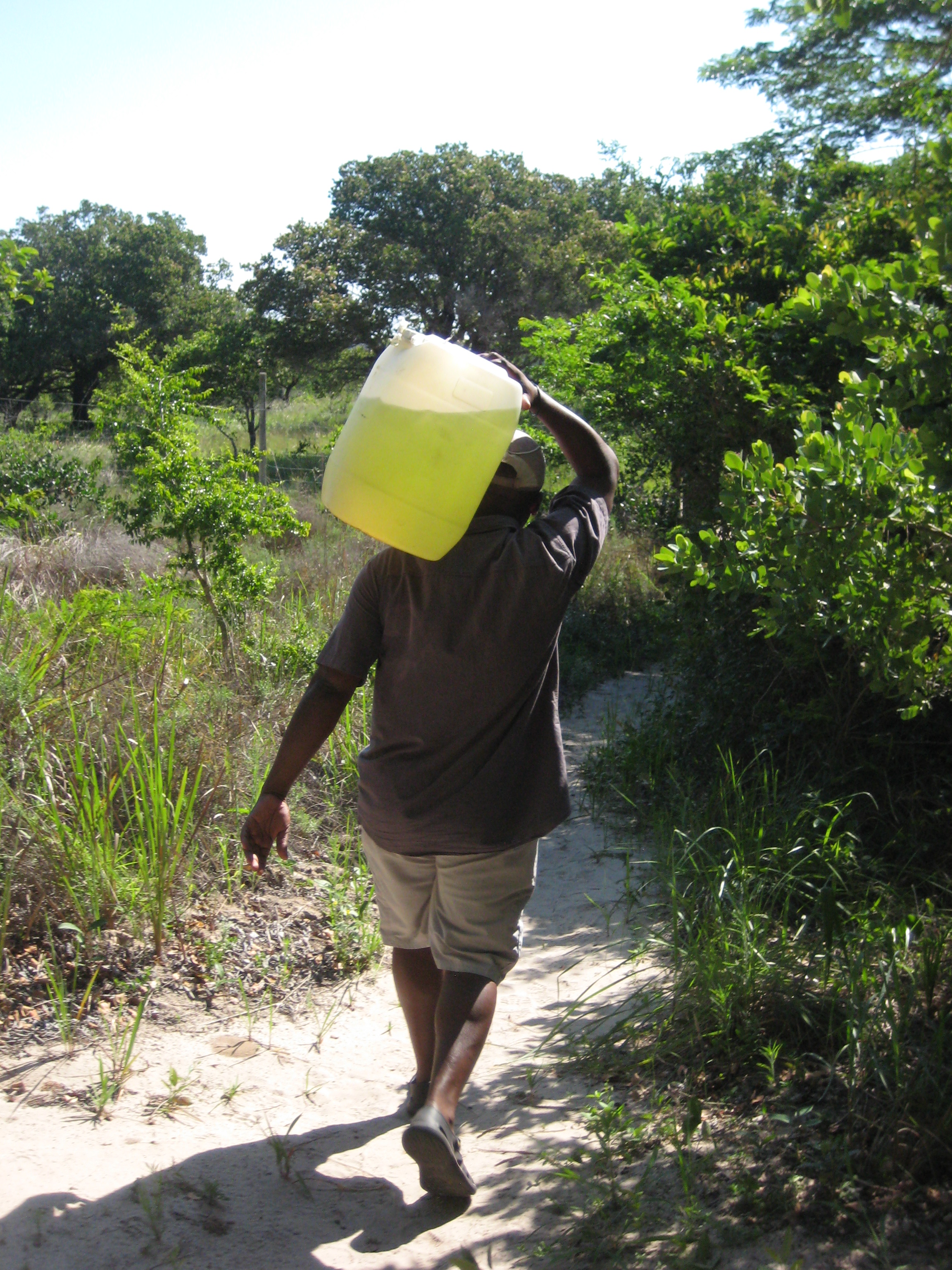 Nach nur acht Eiern, ist Schluss. Das Weibchen pudelt das Gelege geduldig und gründlich mit Sand ein. Ganz geschickt, um Nesträuber zu verwirren, täuscht sie an einer etwa einen Meter entfernten Stelle ein erneutes Nest vor. Wie clever die Natur ist. Dann macht sie sich auf den Weg zurück ins Wasser. Die Weibchen kehren zur Eiablage an den Strand zurück, an dem sie selber das Licht der Welt erblickten. Jabulani sagt, dass nur sehr, sehr wenige Babyschildkröten überlegen werden. Viele Eier werden, z.B. von Krabben, bereits aus dem Nest gestohlen und verzehrt, trotz Vortäuschmanöver.