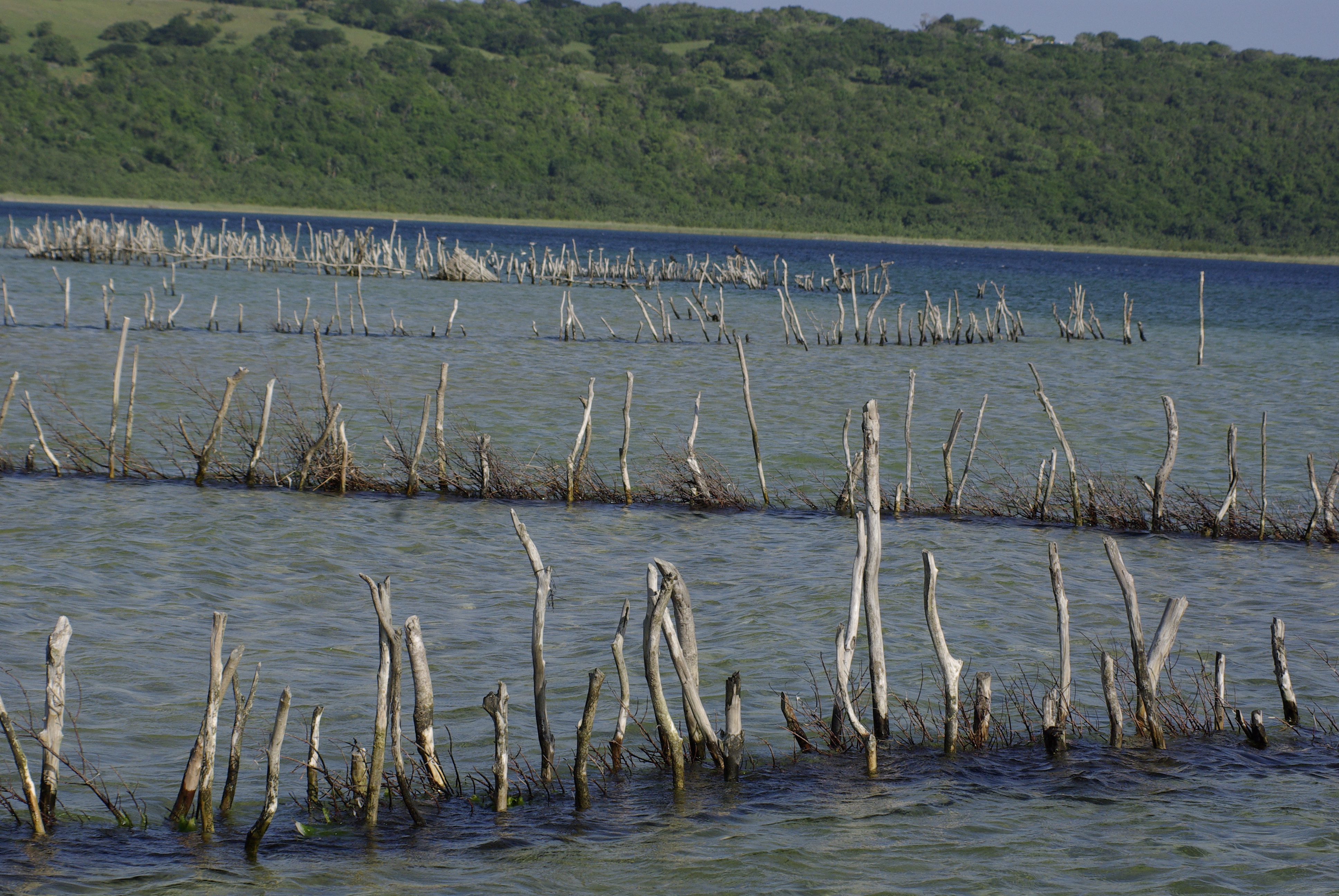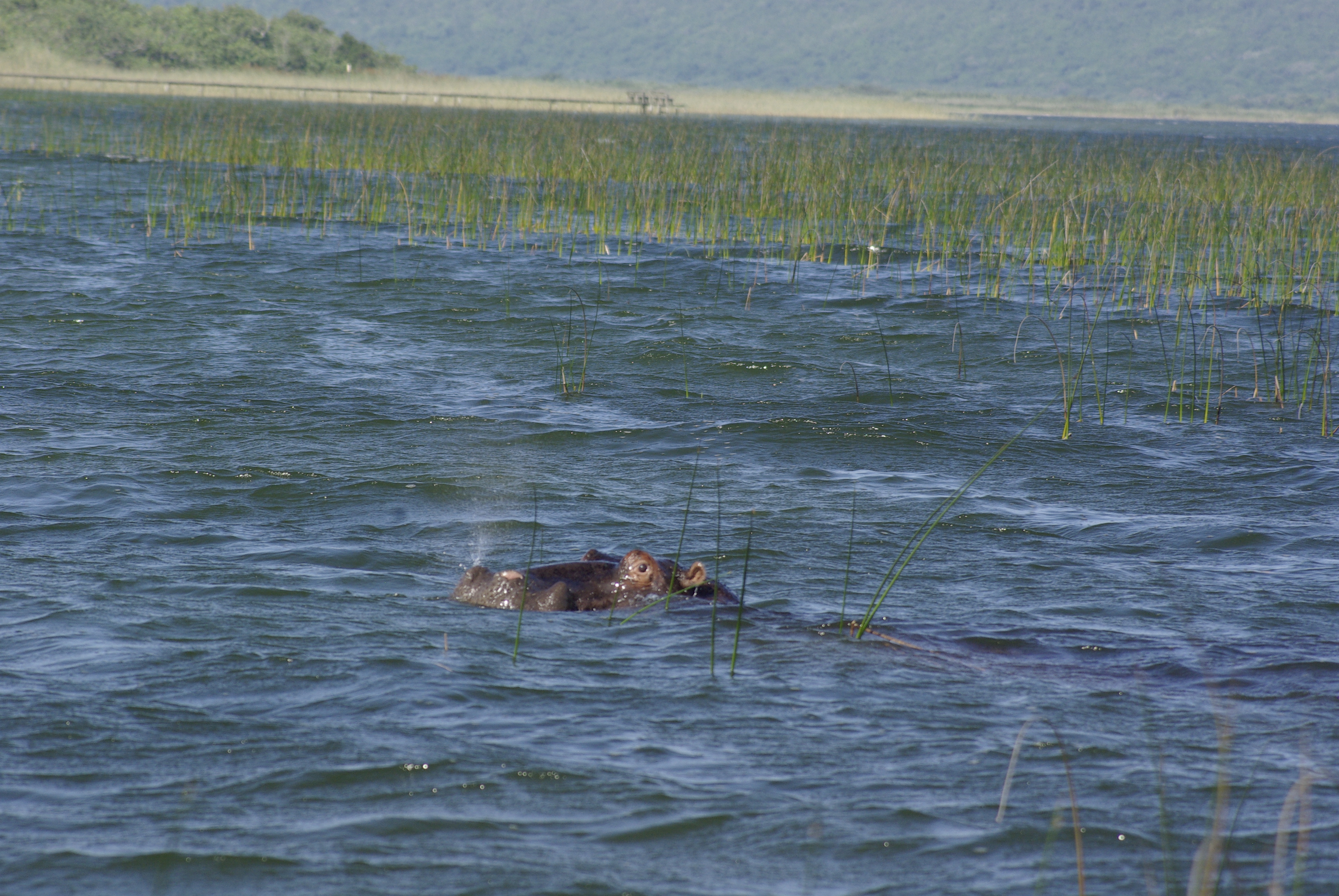 Am nächsten Morgen machen wir uns auf den Weg nach Sodwana Bay. Die Sandpisten von gestern haben uns gefallen und so wählen wir spontan die Route durch den „Coastal Forest“. Auf abwechslungsreichen, einspurigen Sandpisten, geht es durch tiefsten Wald. Die Spur ist so eng, dass immer wieder Äste unser Auto streifen, sowohl von oben, als auch auf der Seite. Gegenverkehr, den wir zum Glück nicht oft haben, fordert Fahrergeschick. Einer muss meist rückwärtsfahren, bis man eine Ausweichmöglichkeit gefunden hat, nicht immer einfach auf der engen Piste. Unser Motto: Der Weg ist das Ziel. Wir lassen uns durch nichts aus der Ruhe bringen. Uns wird ein wunderbarer Blick auf Lake Sibhaya geboten, dem größten Frischwasser See Südafrika, in dem sich gerade eine Herde Kühe bei einem Bad erfrischt.