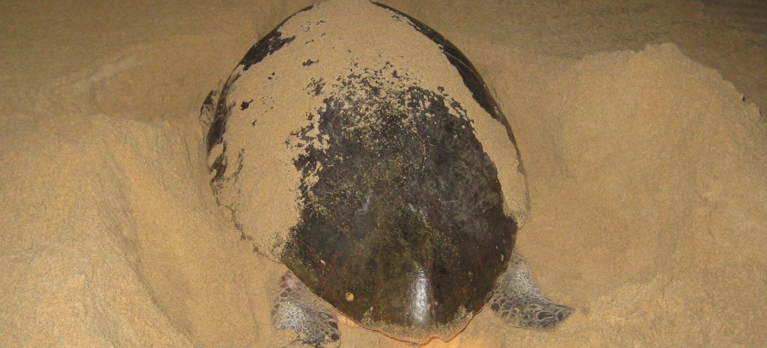 Es ist schon fast 23 Uhr und wir begeben uns langsam auf den Rückweg. Wir haben sicher 40-50 km am Strand zurückgelegt. Auf dem Rückweg machen wir dann noch eine glückliche Entdeckung. Eine weitere Schildkröte kommt an Land. Dieses Exemplar ist noch einmal größer als die beiden vorherigen, wir sind sprachlos. Jabulani erklärt uns, dass es sich hierbei um eine Leatherback – eine Lederschildkröte handelt. Sie ist die größte lebende Schildkröten Art. Ihre „Spannweite“ ist beeindruckend. Sie braucht erheblich länger, bis sie den richtigen Platz zur Eiablage gefunden hat. Langsam geht es auf 1 Uhr zu und auch wenn wir wollten, könnten wir nicht noch eine weitere Stunde hier verharren. Die Flut kommt und wir müssen uns auf den Rückweg machen. Immer noch ganz beeindruckt, von diesen Erlebnissen der Nacht, genießen wir alle schweigend noch den Anblick des Wolkenspiel mit dem Licht des Vollmondes auf unserem Weg zurück ins Hotel.