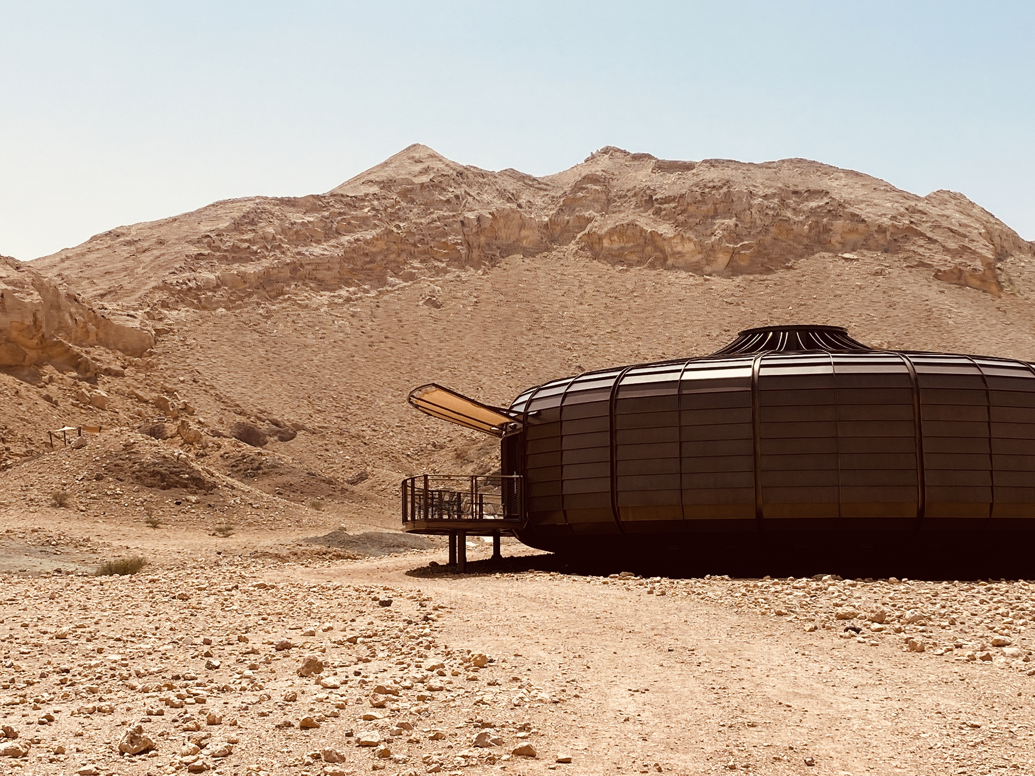 Wie kleine gelandete Ufos liegen runde, erdfarbene Gebäude im hellen, sandfarbenen Geröllland aus mehr Stein als Sand. Die Anlage ist wunderschön in die Landschaft eingefügt. Wir lernen viel über die Erdmassen und Erdteile, die Verschiebung der Erdplatten und somit irgendwann auch über die Entstehung der Berge und Erhebungen, die sich um uns herum erstrecken. Große Panoramafenster geben in jedem Gebäudeteil den Blick auf die weite Öde frei. Fast so, wie riesen große Panorama-Gemälde. Für die Kinder gibt es immer wieder interaktive Präsentationen; montierte Ferngläser, mit denen wir die Beschaffenheit des Geländes vor uns genau untersuchen können; Mikroskope und spielerische Lernstationen. Wirklich toll gemacht. Außer uns ist nur noch ein weiteres Paar zu Besuch.