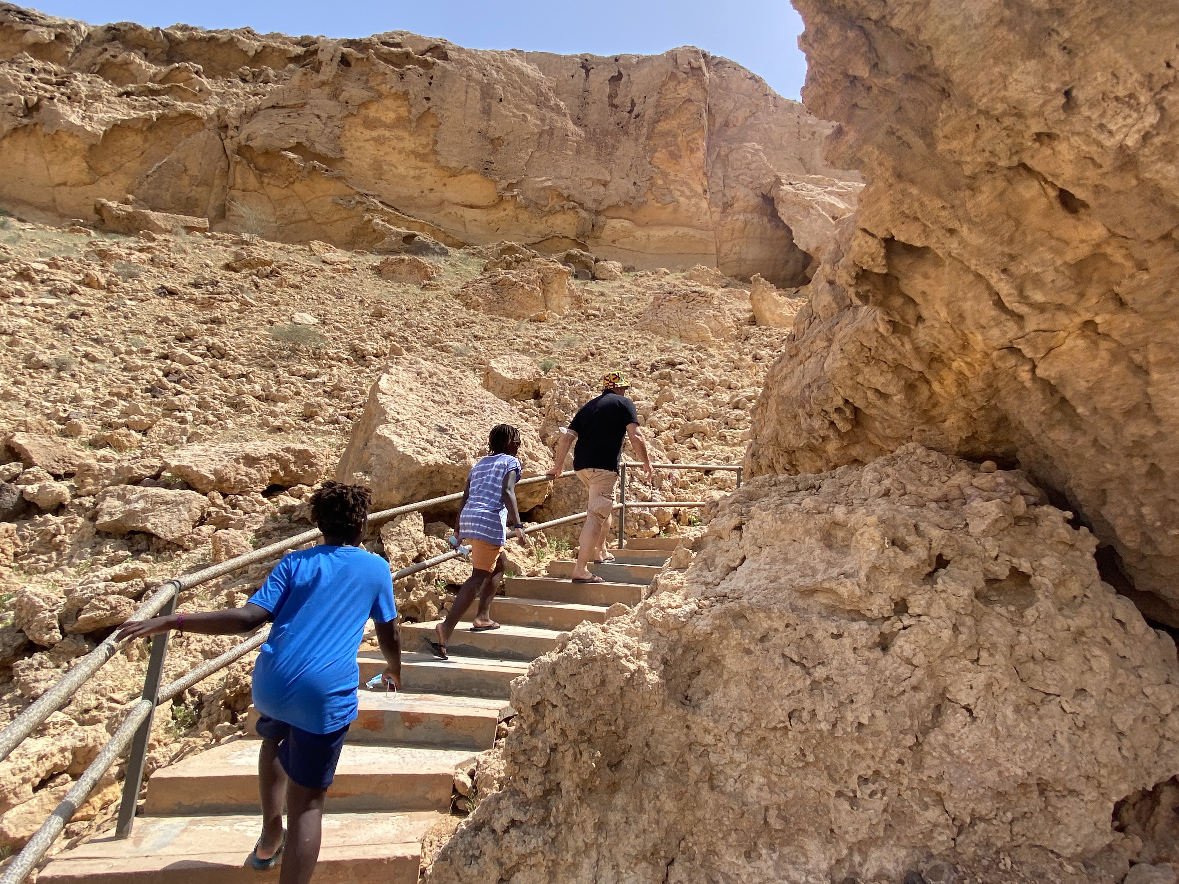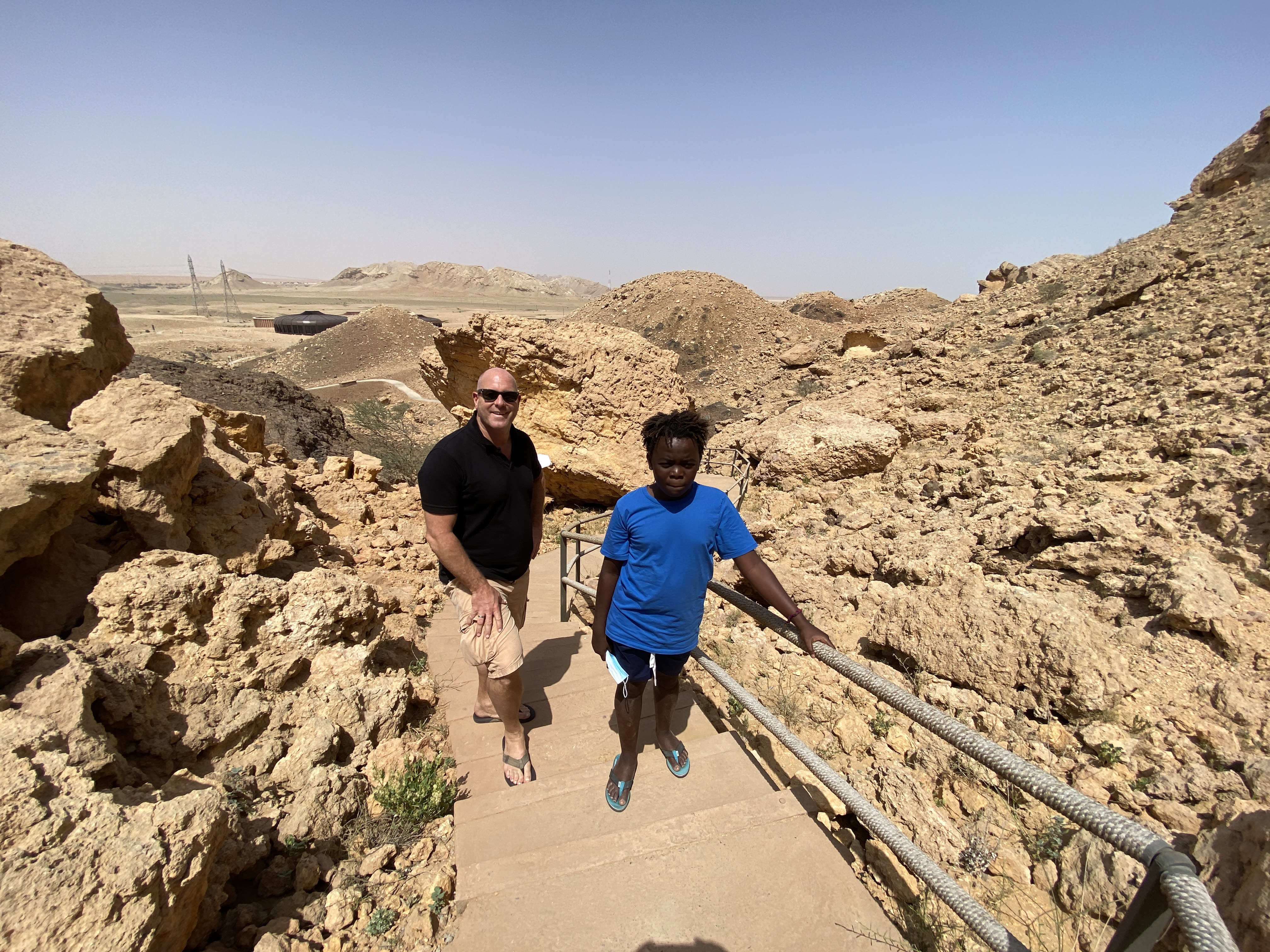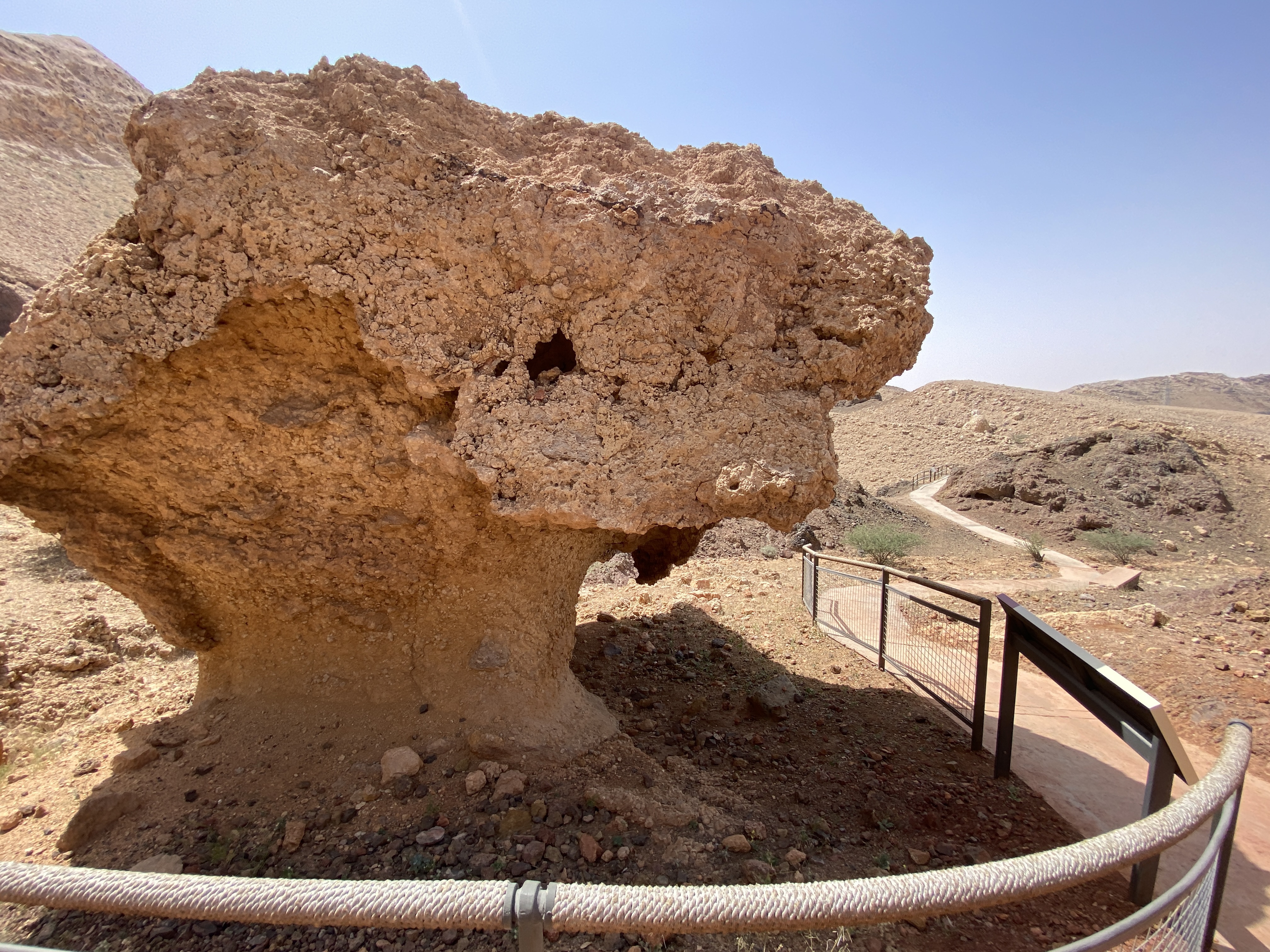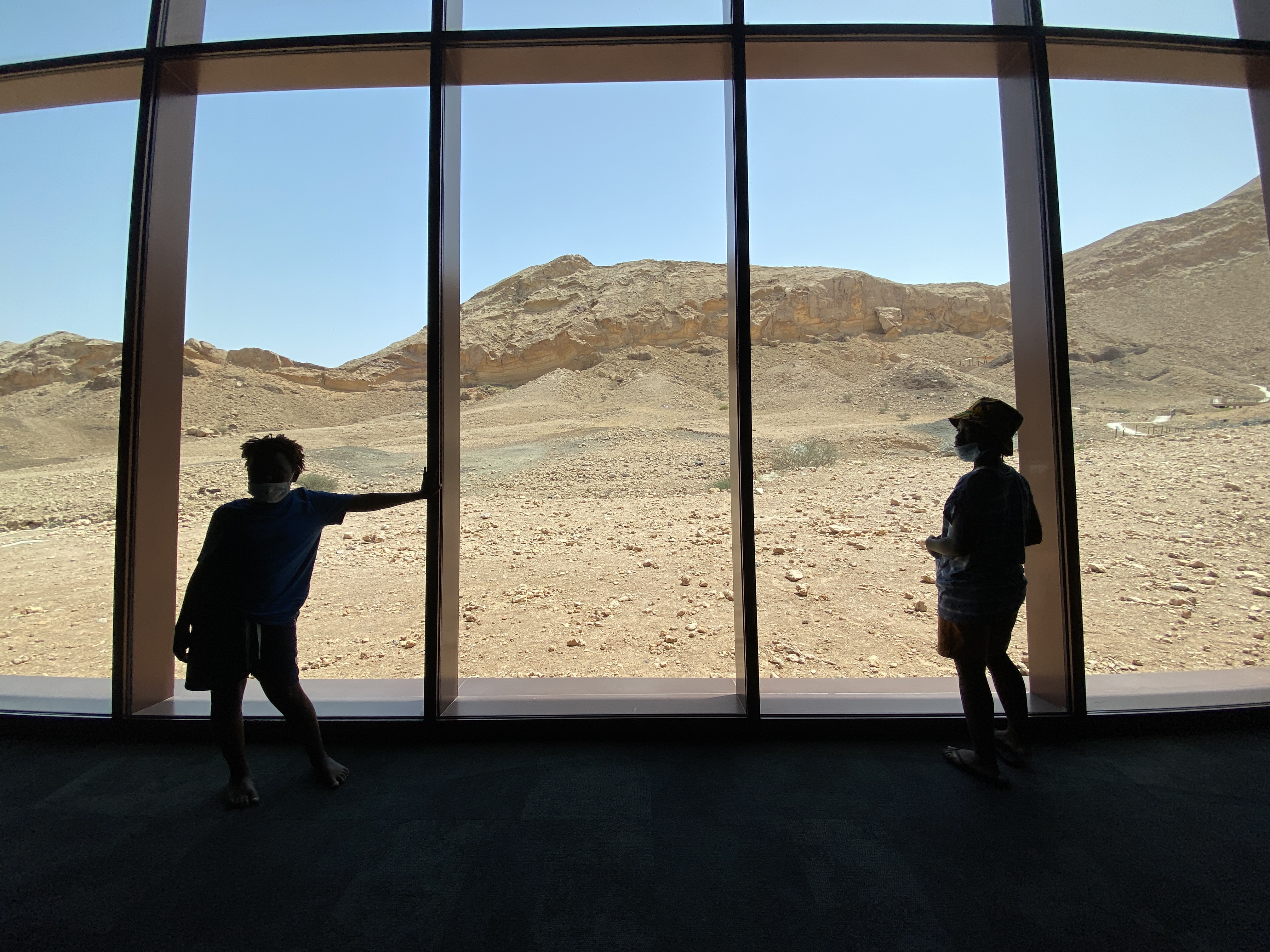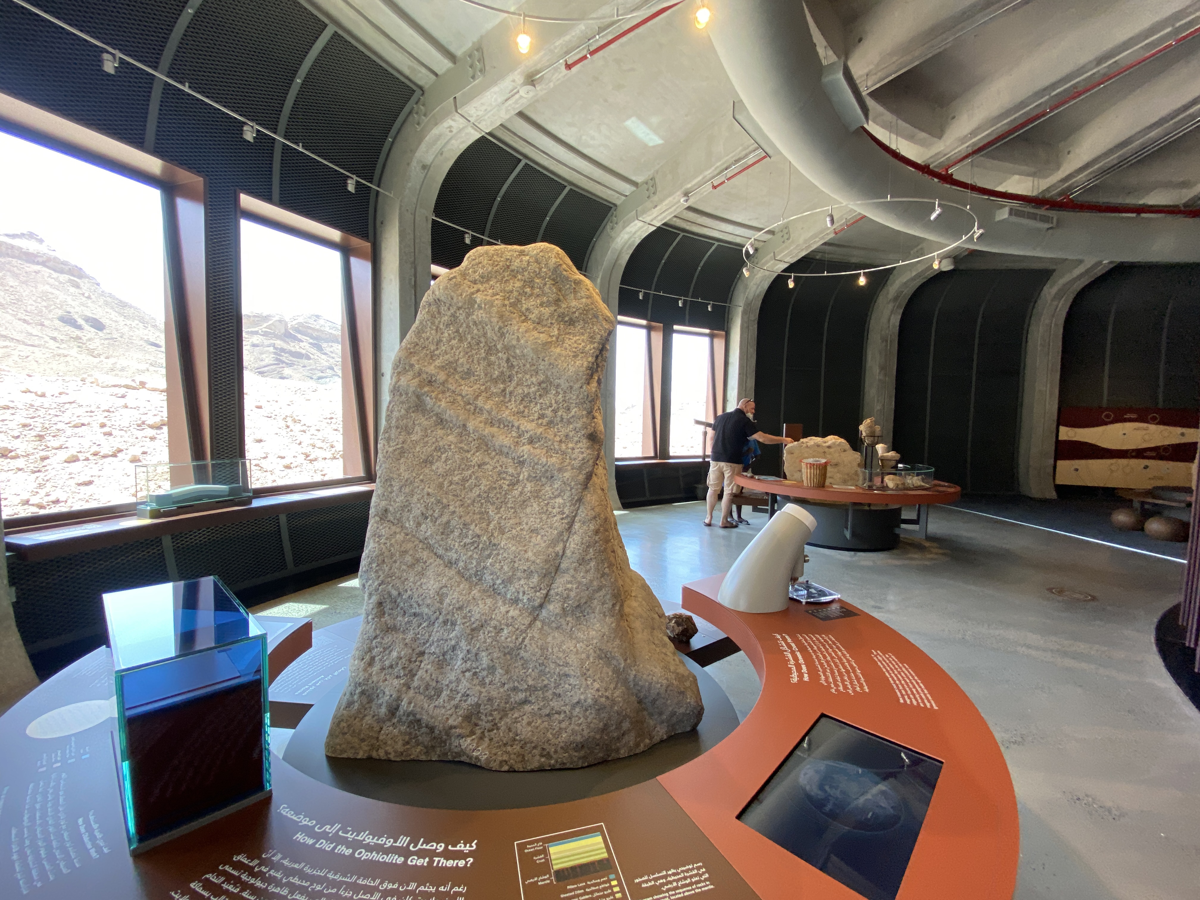 Von einer netten Mitarbeiterin werden wir vier in ein Kino geführt. Hier wird noch einmal visuell, sehr anschaulich, die Entstehung der Erde und der Berge Sharjahs gezeigt. Der absolute Höhepunkt ist dann, wenn die ebenfalls halbrunde Leinwand zur Seite fährt und dahinter erneut ein großes Panoramafenster freigibt. WOW. Wir sind die einzigen im Kino und genießen noch eine ganze Weile die Aussicht bevor wir uns weiter auf EntdeckungsTour machen. Es gibt noch Fossilien zu entdecken und vieles mehr…