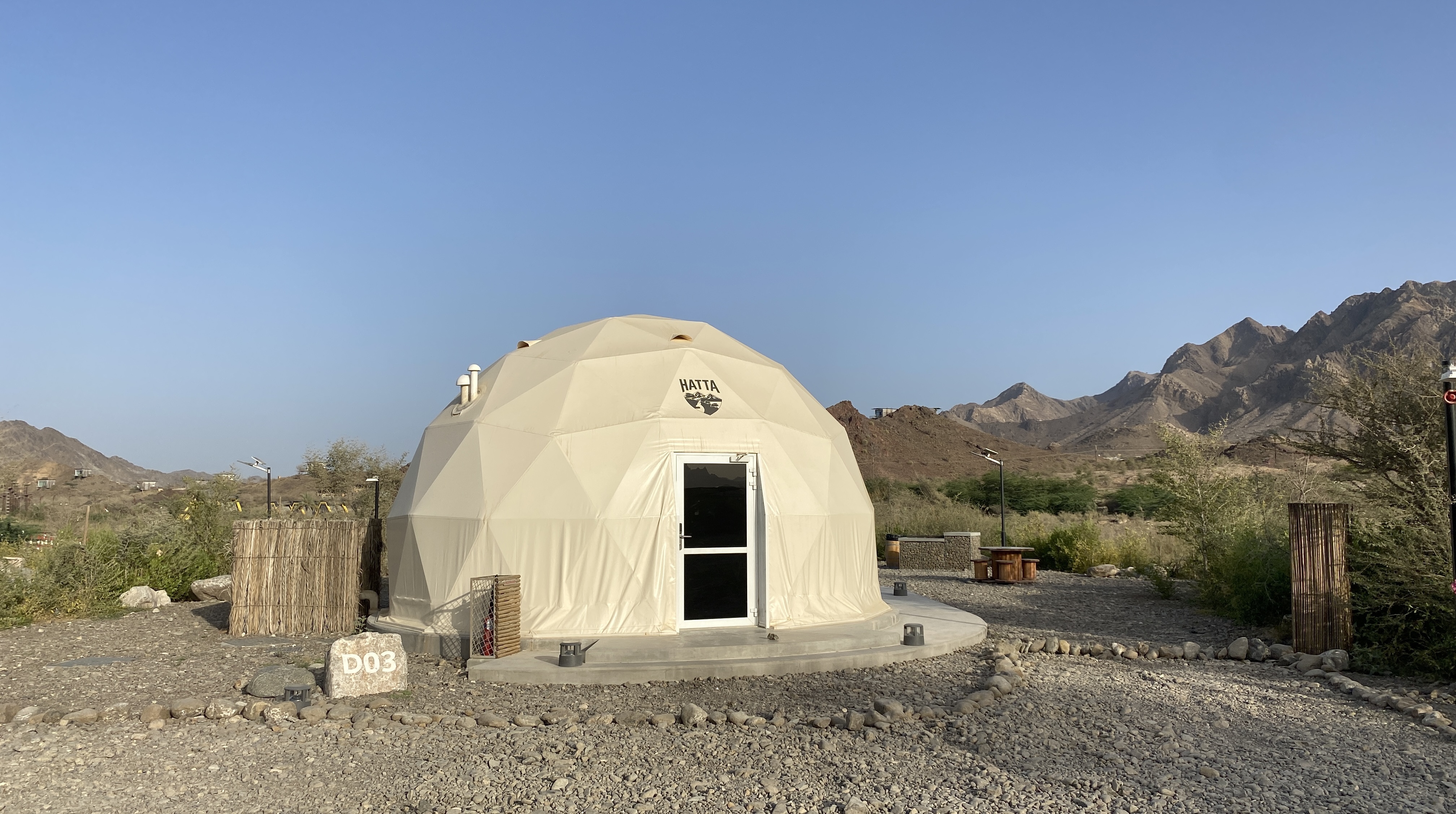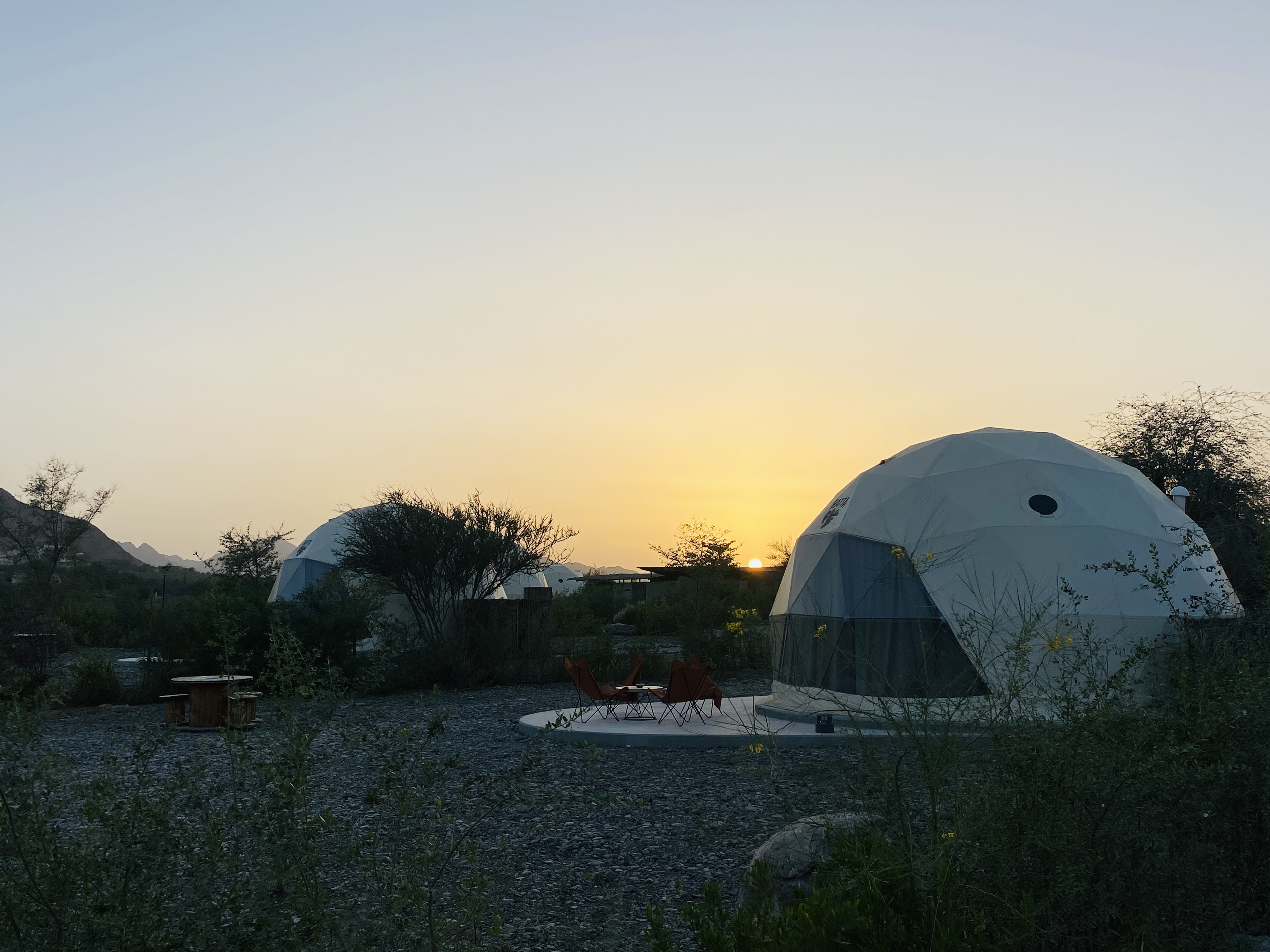 … auf unserem letzten Roadtrip. Das weiße Kuppelzelt mit überdimensionalem Panoramafenster ist einfach ein Traum. Davor stehen vier leuchtend orangene Campingstühle mit Blick auf die Berge. Der kahle, steinige Boden um unsere Zeltplatte herum ist trist, aber schön. Auf unserem „Zelt-Grundstück“ steht in guter Entfernung vor jedem Zelt noch ein gemauerter Grill. Und es ist klar, wir werden diesen Traum heute nicht mehr verlassen. Wir lümmeln in den Campingstühlen, lesen und genießen die Ruhe und den Blick auf die Berge. Die Nachbarzelte können wir komplett ausblenden. Außer uns scheint auch noch niemand angereist zu sein. Ein Traum. Beim Check-In hatte man uns eine Telefonnummer gegeben, unter der wir ein Grillpaket bestellen können. Das machen wir auf jeden Fall. Ein Braai, wie der Südafrikaner sagen würde… wir fühlen uns auch ein bisschen, wie in einer Hütte im afrikanischen Busch. Tolle Erinnerung und jetzt Realität. Wir bestellen nicht nur Grillgut, sondern auch noch gleich ein paar Getränke (nur alkoholfrei verfügbar). Alles wird mit einem kleinen off-road Golfcart angeliefert. Mit dem auch wir mit unserem Gepäck vom Parkplatz zum Zelt geliefert wurden. Denn der Zeltbereich ist autofrei.
