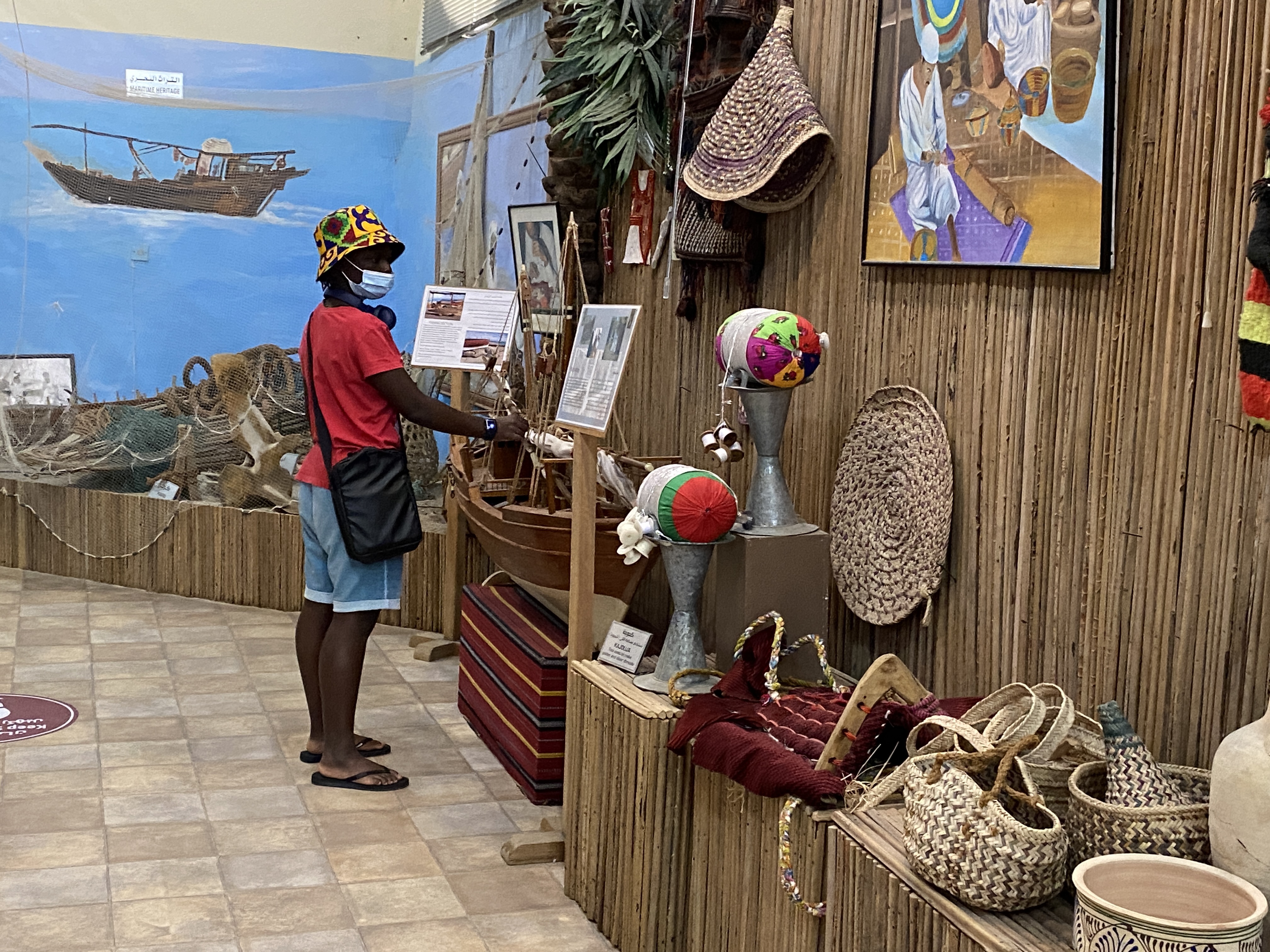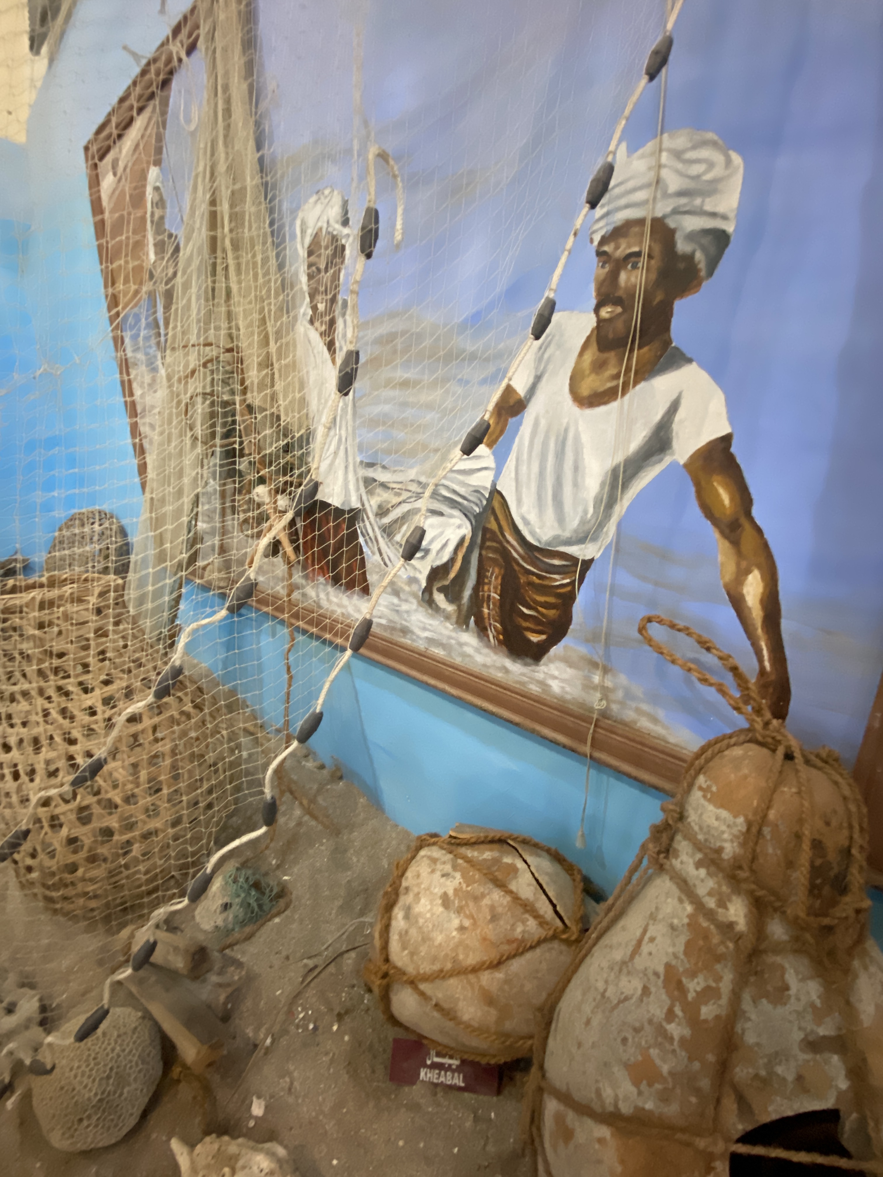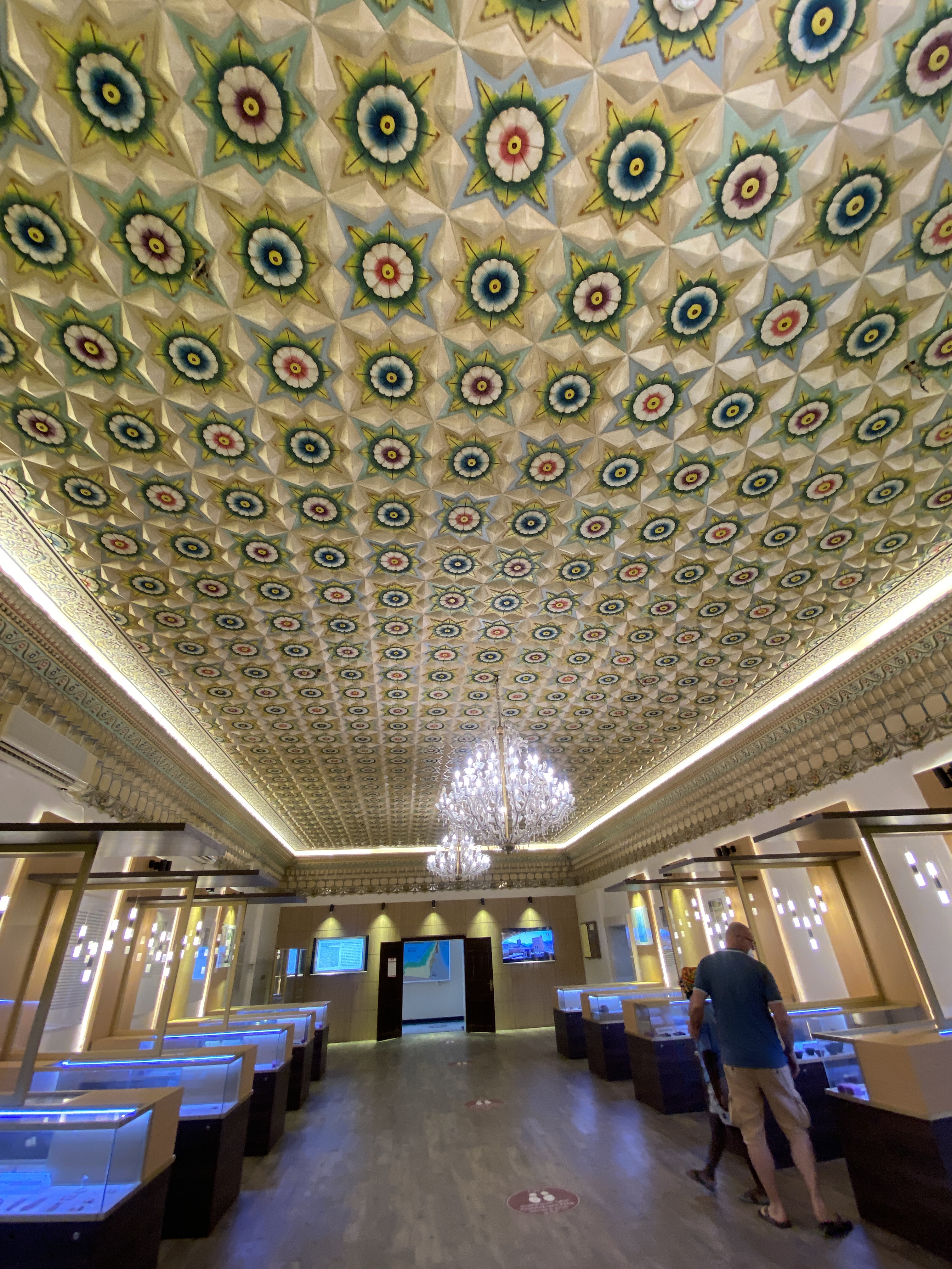 Den Tag starten wir mit dem Besuch des Fujairah Museums. Um einen großen Innenhof reihen sich einige Gebäude aneinander. Das Museum zeigt neben sehr vielen historischen Funden aus der Gegend auch etwas zur Entstehung und Entwicklung des Lebensraumes Fujairah. Die Räume sind toll gestaltet mit wunderschönen Deckenverzierungen. Wir sehen alte Waffen, Säbel, Münzen, Töpfe und Scherben. Die Lebensumstände früherer Zeiten werden anschaulich dargestellt, Traditionen und Handwerk. Kurzweilig.