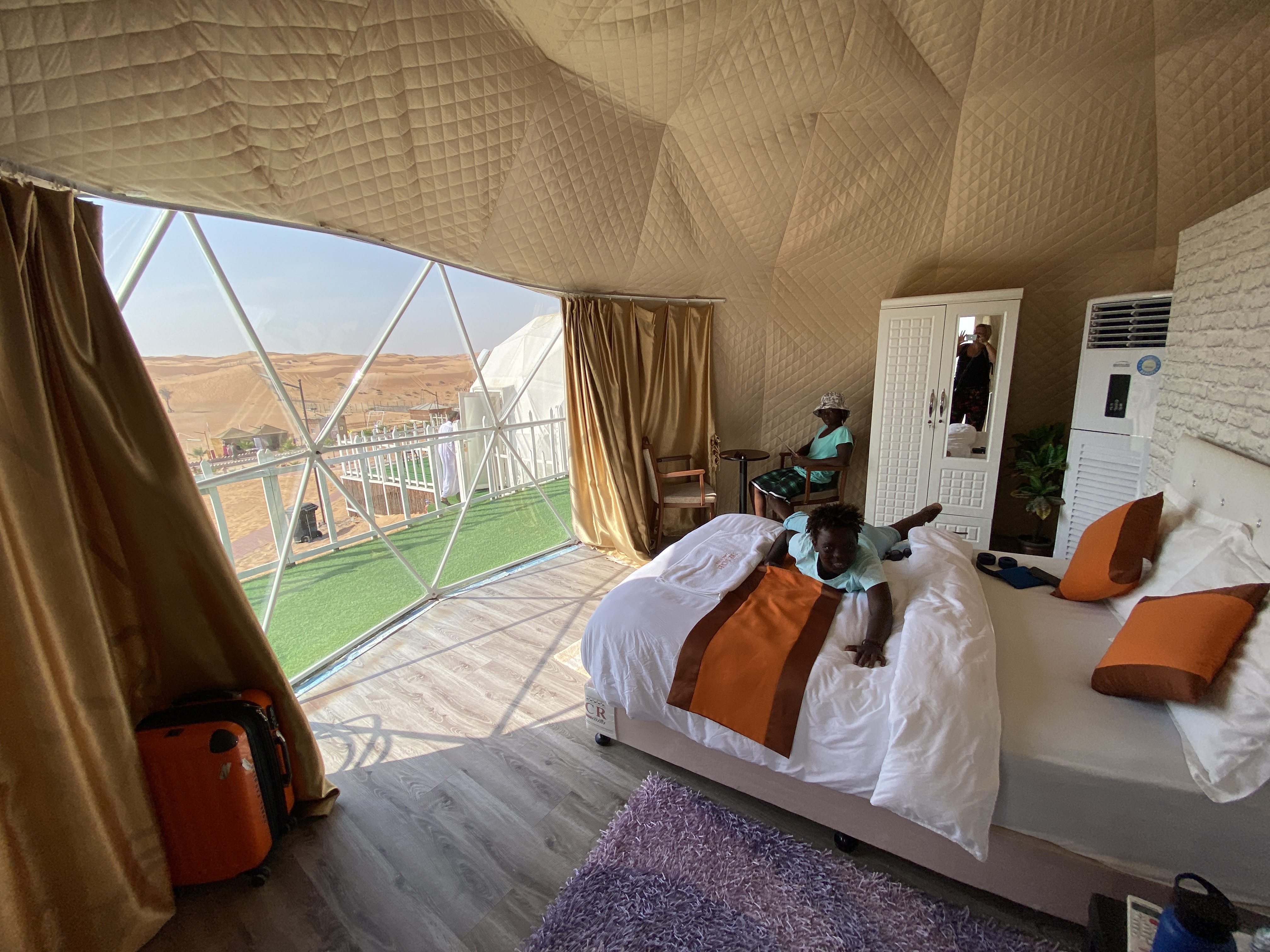 Und wir werden so wunderschön überrascht. Ich habe Dome Zelte gebucht. Die Kinder hatten noch Osterferien und somit konnten wir unter der Woche fahren, was dazu führte, dass in dem Camp sehr, sehr wenig Besucher waren. Es waren vielleicht noch zwei andere Parteien zum Übernachten im Camp und ein paar wenige, die zum Abendprogramm mit einem Fahrer vorbeikamen. Exklusive Show nur für uns.