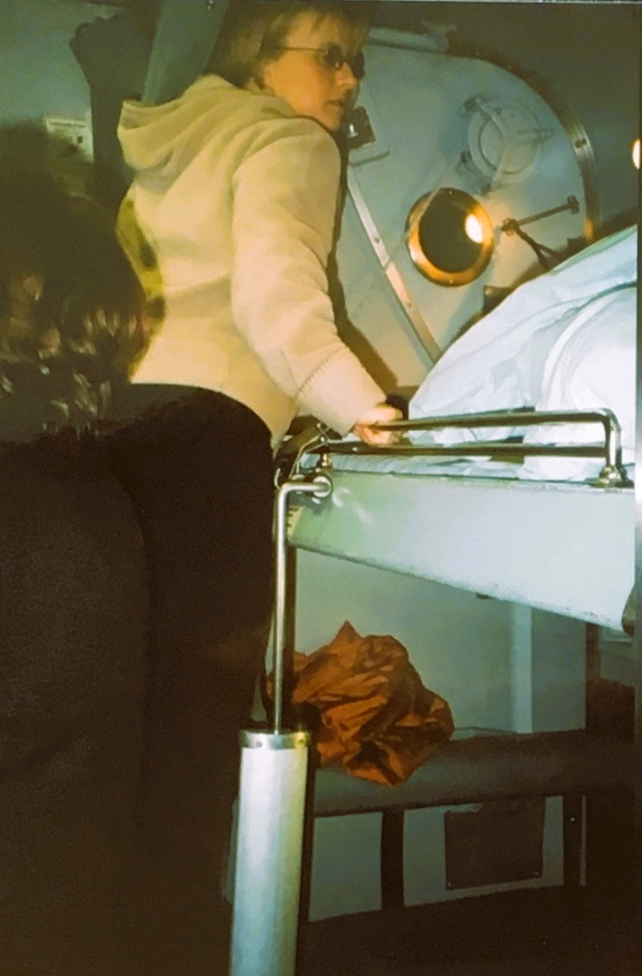 Jetzt legen wir uns gleich erstmal in die Kojen. Vorfreude. In unserem Großraumabteil wurden von den Decken die oberen Betten heruntergeklappt, eines davon ist mein Gemach für die Nacht. Die unteren Sitze wurden ebenfalls in Kojen umgewandelt. Alles abgetrennt durch separate Vorhänge und Netze. Super gemütlich meine kleine „Muschel“. Ich habe ja nicht viel dabei, außer einer wirklich kleinen Tasche, die findet hier locker Platz. Am Wagon Ende befindet sich eine Nasszelle, die wir uns teilen.