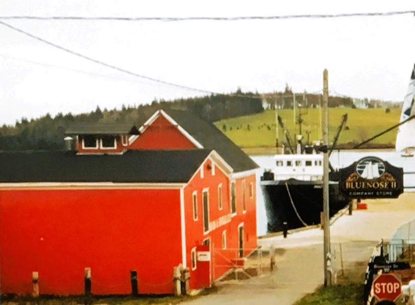 Mir persönlich gefällt allerdings ein rotes Gebäude am Wasser am besten. Die leuchtend rote Farbe des Hauses mit der Aufschrift Lunenburg vor einem Anlegesteg, an dem ein größeres schwarzes Boot liegt. Wie ein Gemälde, super schön.
