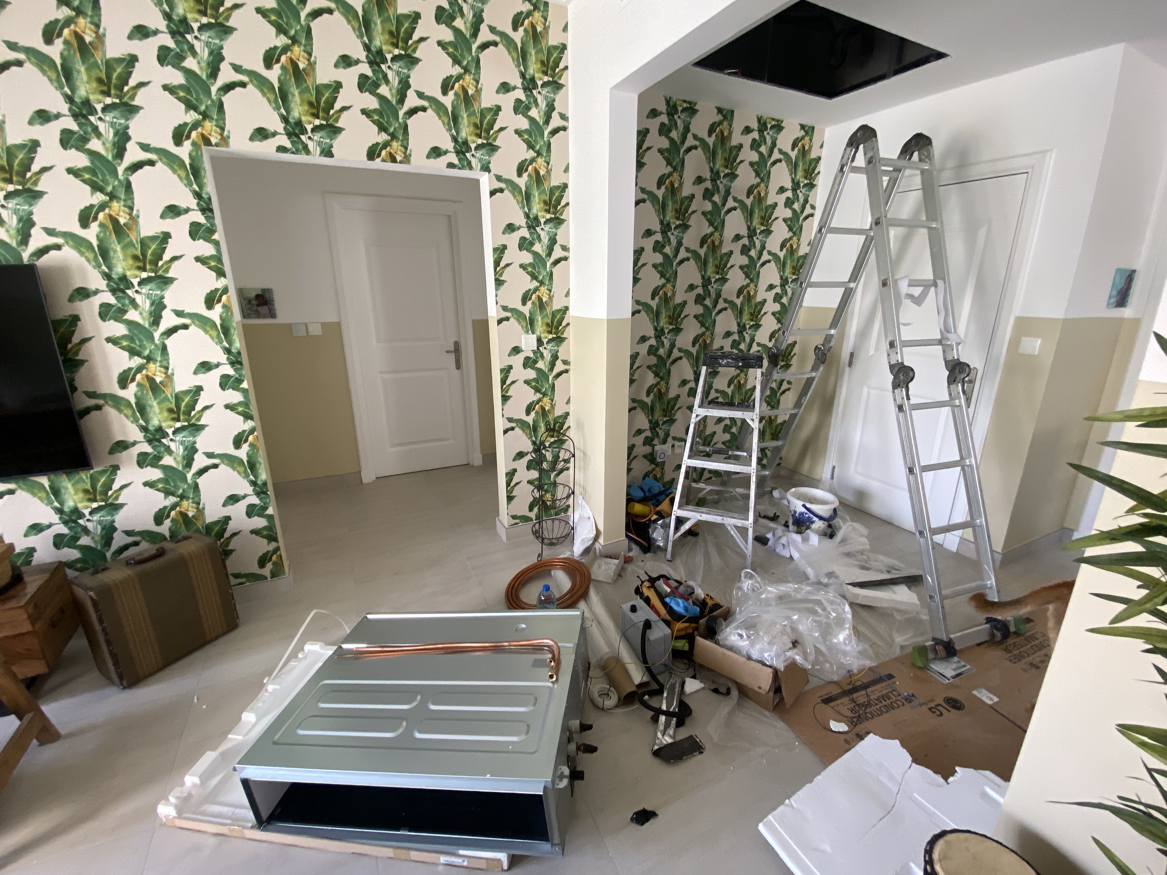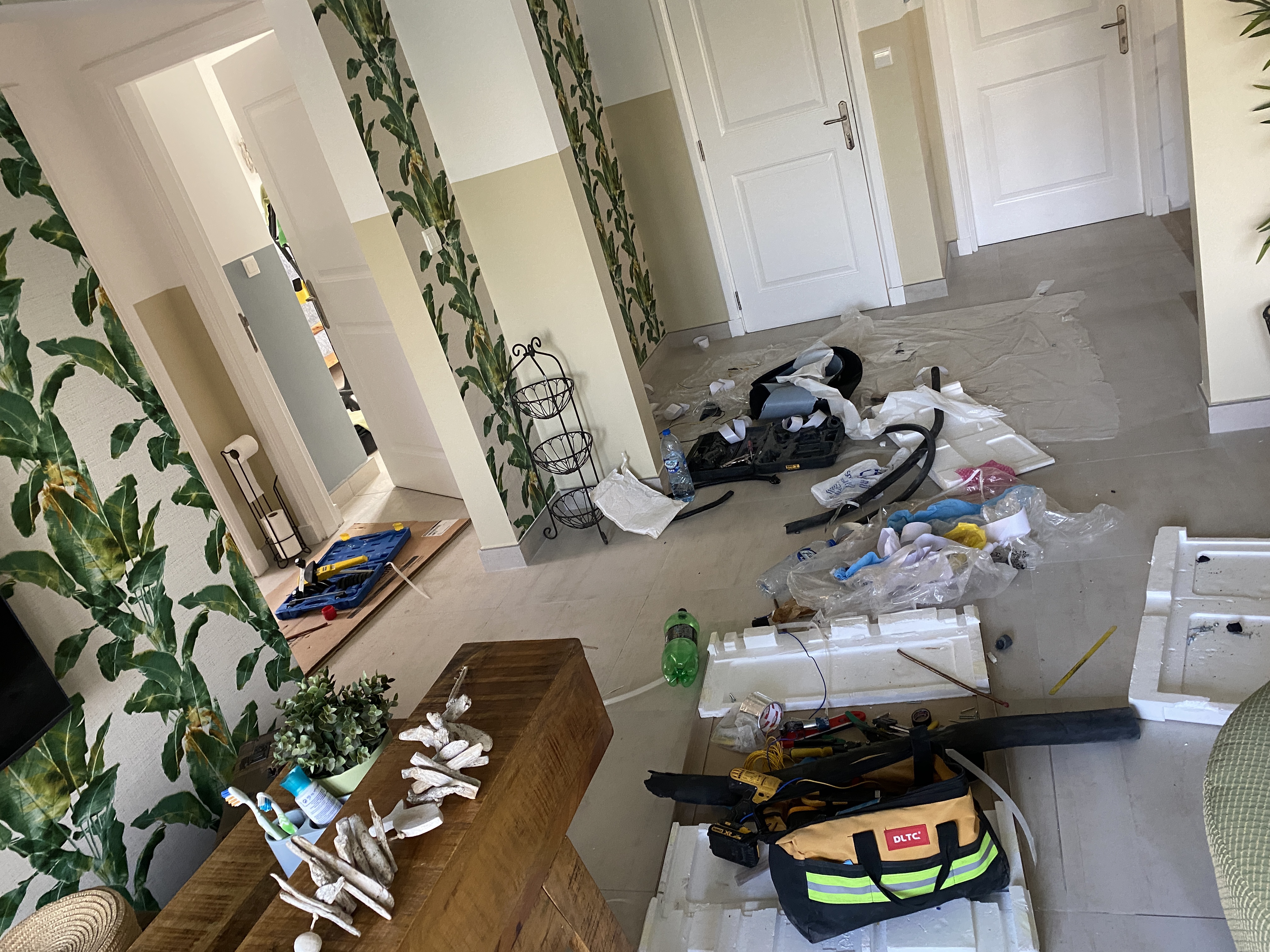 Erstmal gibt es da meinen Zustand. Totale Baustellen-Erschöpfung, wobei ich weder diejenige bin, die bei 45 Grad auf dem Dach arbeitet, noch diejenige bin, die im Kran in 10m Höhe vor unserem Haus hängt und bei 45 Grad arbeitet, nicht diejenige bin, die den Kopf durch Mini-Luken in der Decke stecken muss, um irgendwelche Kabel oder Schläuche durch die Zwischendecken zu ziehen, noch diejenige bin, die die krass überdimensionalen neuen Klimaeinheiten ebenfalls in eben dieser Zwischendecke über Kopf montieren muss ein, das bin ich nicht. Ich bin diejenige, die aber gefühlt (wahrscheinlich vollkommen verfehlte Erinnerungswahrnehmung) seit Anfang November 2021 hier mit einer ständigen Baustellensituation leben muss. Ich bin die, die ständig unzählige Männer irgendwo im Haus arbeiten hat, die nicht immer wirklich frisch geduscht duften, die aber natürlich auch nicht wie wir wohnen und somit vielleicht auch nicht die Chance auf eine tägliche Dusche und den Zugriff zu einer Waschmaschine haben. Ich habe Verständnis für all diese Fakten und verstehe vollkommen auch deren Situation. Trotzdem bin ich es, die keinen Tag der Woche mal eine paar Stunden alleine im Haus ist. Es ist immer irgendwo irgendwer am Arbeiten. Überall ist immer wieder Dreck, weil Zwischendecken geöffnet oder gar aufgeschnitten werden müssen, überall Staub und Müll und Material, dass auch von der Garage oder von draußen mehr und mehr Staub ins Haus trägt. Ich bin auch nicht die, die das Putzen übernimmt. Das macht unsere liebe Perle mit größter Hingabe und Zuverlässigkeit. Die aber auch nicht jeden Tag bei uns arbeitet…