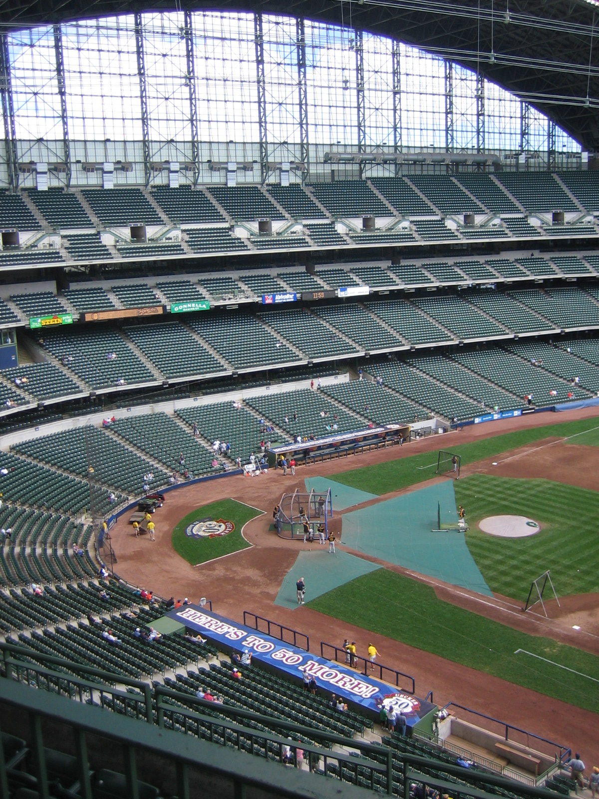 Wir haben also Tickets für ein Spiel gebucht, sitzen auf den Tribünen des Miller Stadiums (wieder mal Brauereigeschichte der Gegend…) und versuchen, das Spiel zu verstehen. Bisschen wir Brennball früher in der Schule… Es spielen heute die Yankees gegen die Brewers. Blauer Himmel, Sonnenschein, immer wieder kommt ein Verkäufer mit gekühlten Miller Bieren im Angebot vorbei. Tolle Stimmung, denn die Brewers liegen vorne.