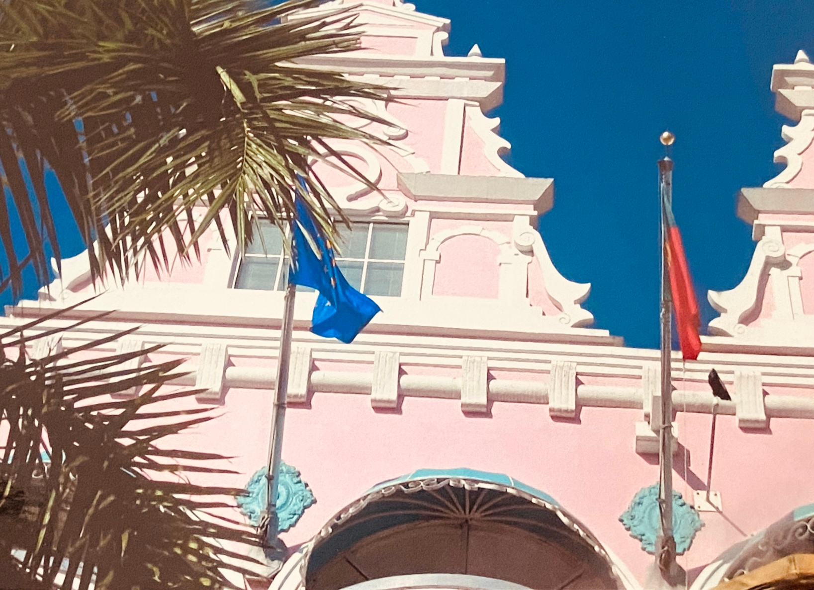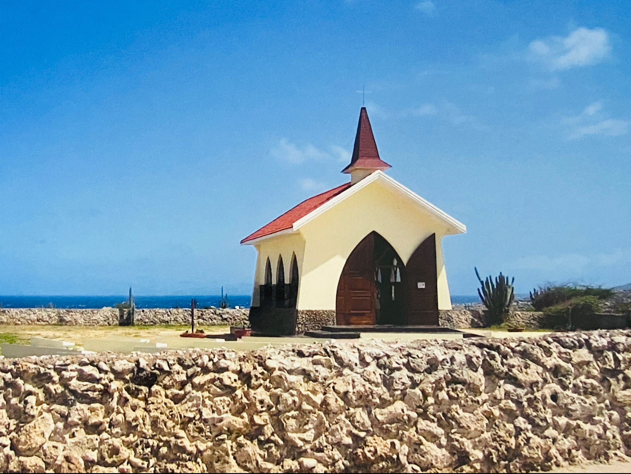 Wir buchen uns in einem kleineren Gästehaus „Arubiana Inn“ ein. Unser Freund empfängt uns mit einer Kiste Balashi Bier bereits auf dem Parkplatz des Flughafens. Wir zischen einen ersten Welcome Drink, aber dann erstmal mit dem Mietwagen zum Einchecken. Den Weg dorthin säumen tolle, farbenfrohe Häuser im kolonial Stil. Zart rosa; hellblau wie das Meer; dunkelrot, immer kombiniert mit Weiß. Wunderschön.