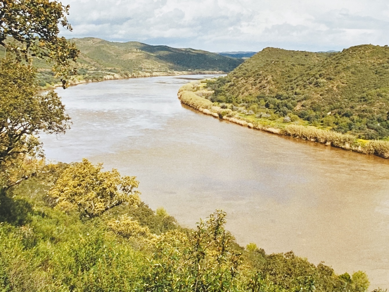 Auf geht’s mit unserem kleinen Flitzer immer am Grenzfluß Guadiana entlang ins Landesinnere. Nie hätten wir uns diese Landschaft so saftig grün vorgestellt. Vielleicht liegt es auch an dem enormen Gewitter, das uns in der letzten Nacht lange wachgehalten hat.