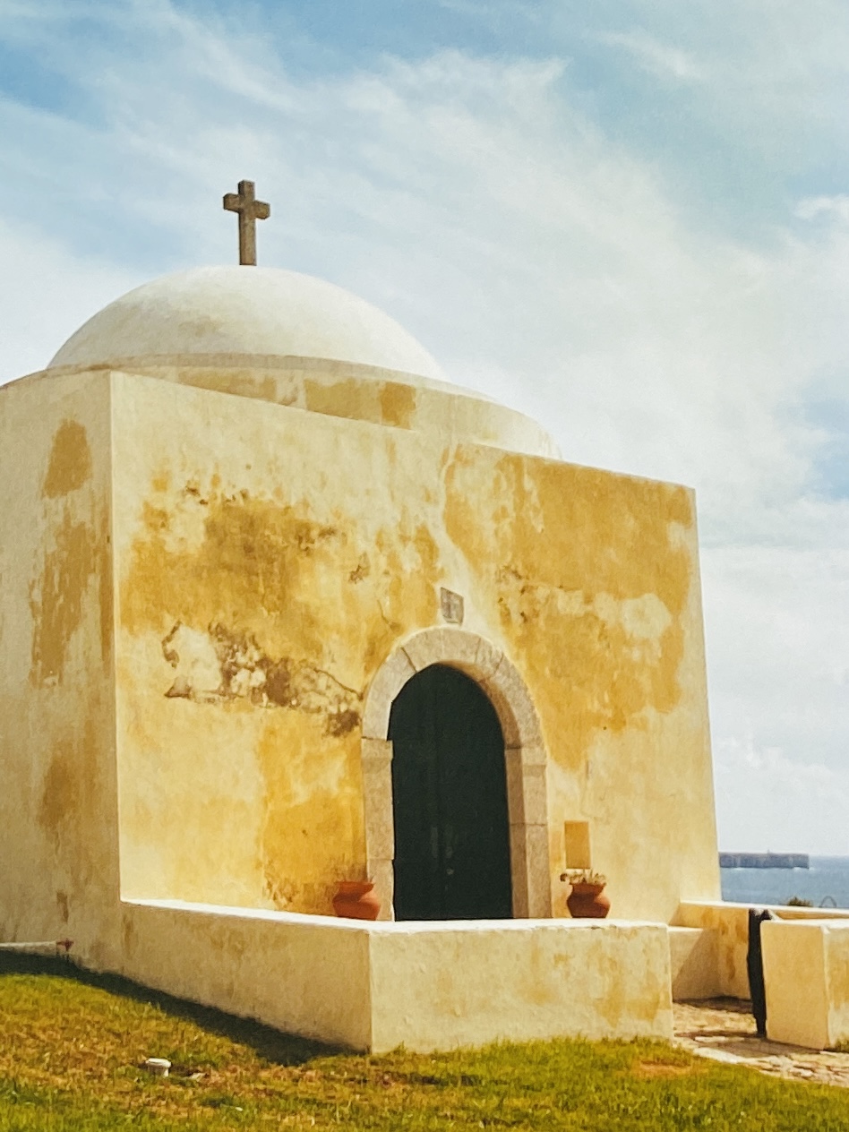 Viel mehr begeistert uns dann auf der Fahrt weiter die (heute: ehemalige) Pousada „Fortaleza do Beliche“. Von außen wirkt sie wie eine weitere Festung. Nur eine Mauer aus rauhem Naturstein mit einem kleinen Durchgang Richtung Meer. In dem schönen Garten mit Blick aufs Meer und einer kleinen Kapelle genießen wir die Mittagssonne und unseren Cappuccino. Nur vier Zimmer gibt es in dieser Pousada. Die Pousadas Historicas (die mir lieber sind) sind staatlich geführte Gasthäuser, die in alten Schlössern, Klöstern oder Burgen untergebracht sind. Einfach zum Träumen, mit extra viel Flair. Außerdem gibt es noch die neu gebauten Pousadas (Pousadas Regionais) die durch ihre Lage z. B. in Naturschutzgebieten auffallen.