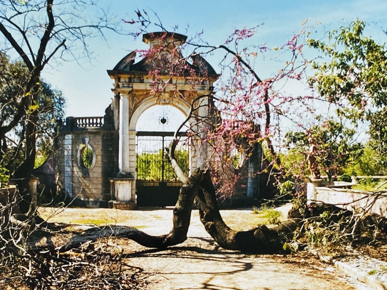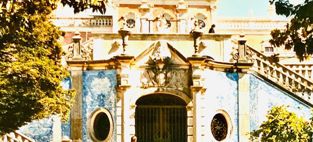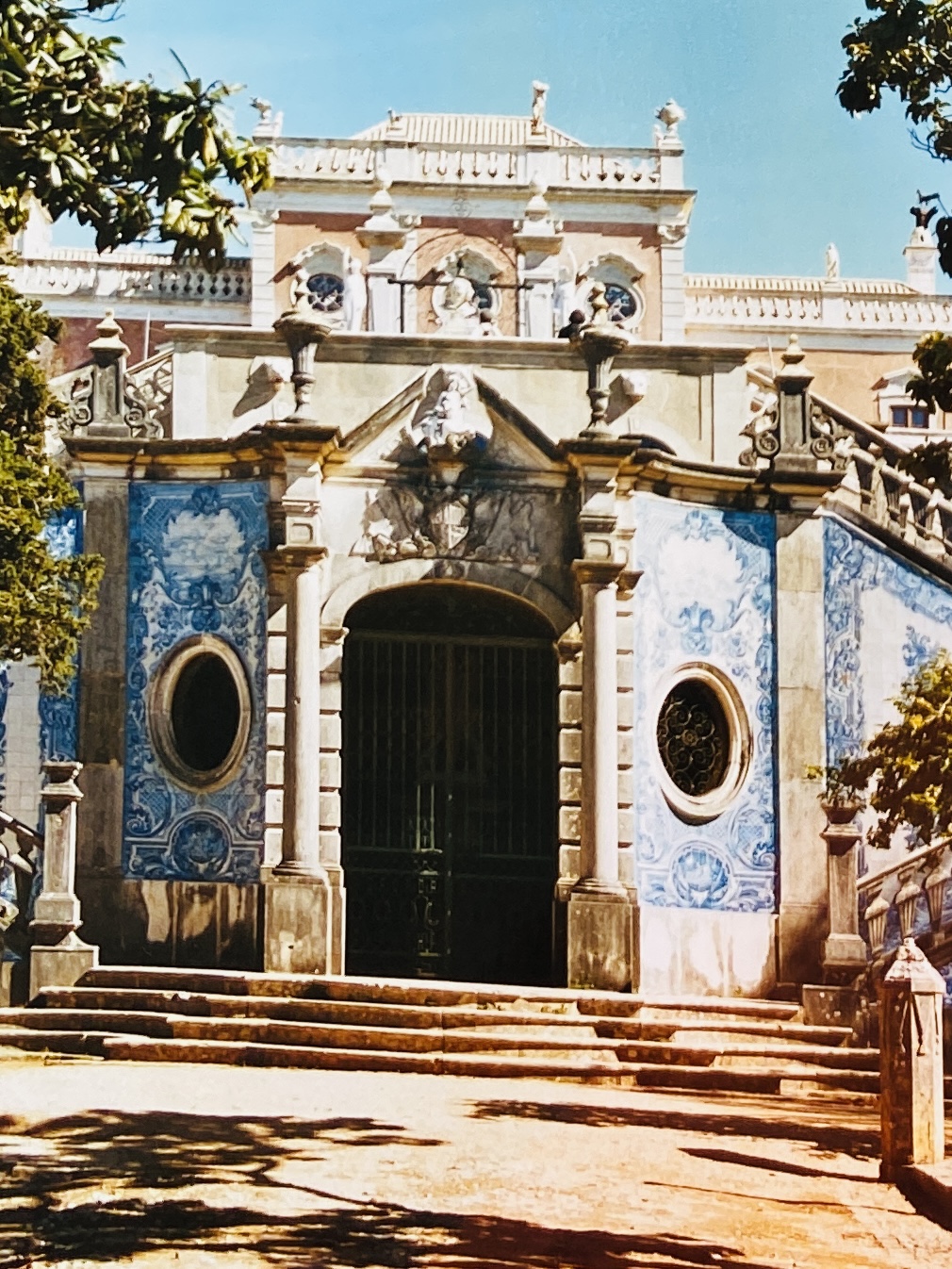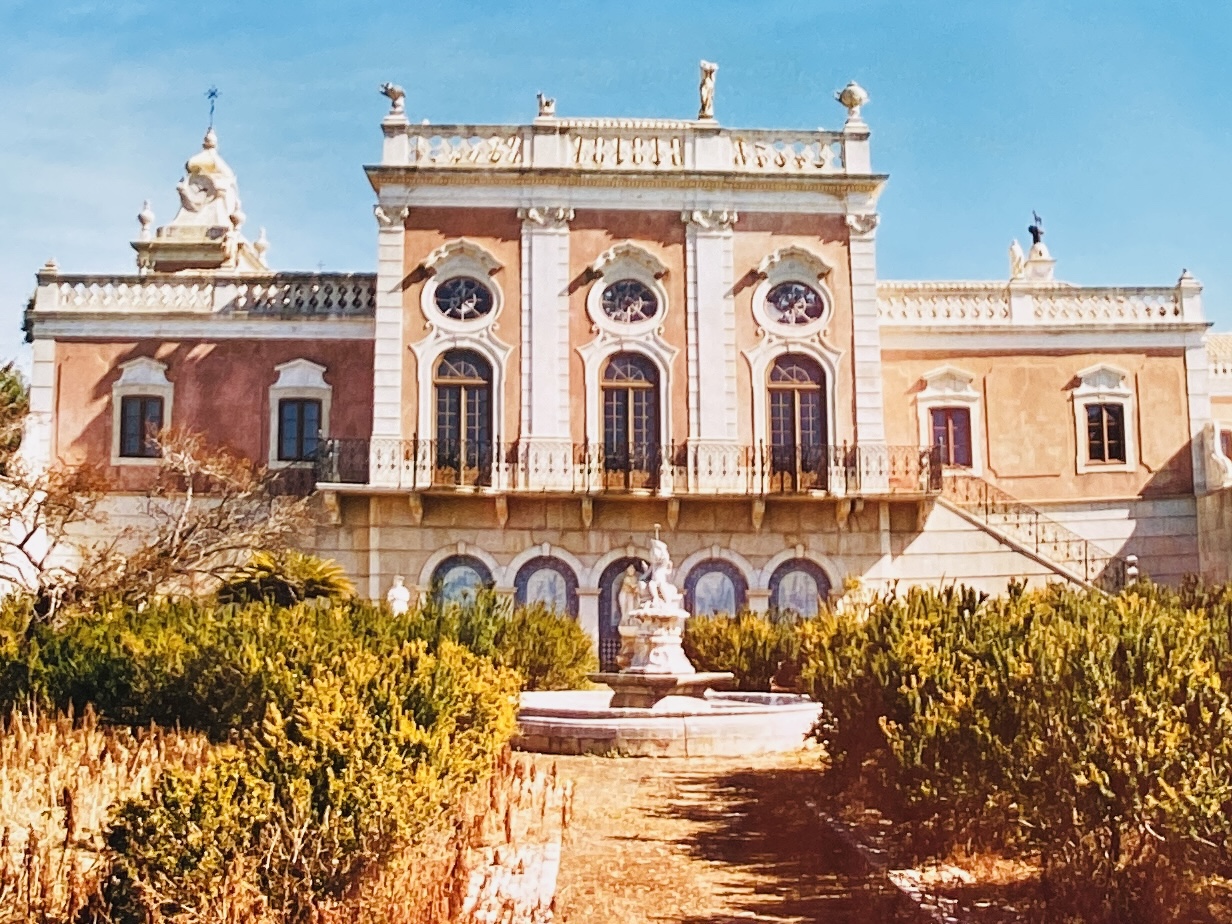 Auf dem Heimweg nehmen wir wieder einen kleinen Umweg in Kauf und machen noch einen Abstecher nach Estoi. Dort soll es, laut Reiseführer, einen herrlichen, verwunschenen Palast geben. Den müssen wir sehen. Und diesmal hat er nicht zu viel versprochen. Durch ein uriges Eingangstor, gelangen wir vorbei an einem leicht verfallen Herrenhaus (für uns Herrenhaus, den Zeichen über den Türen nach, früher Pferde- und Kuhstall) an einen wirklichen Palast. Vom Brunnen aus hat man einen herrlichen Blick über einen verwilderten Garten. Im Hintergrund sind große Azulejos. Diese Fliesenbilder sind typisch für Portugal und stammen ursprünglich aus dem persischen Raum. Eine Treppe führt vor ein großes Eisentor, das den Eingang in einen weiteren Garten versperrt, aber den Blick auf den wirklich verwunschenen rosa Palast freigibt. Das ist mit das Schönste, was wir bis jetzt gesehen haben. Die Stadt Faro hat dieses Anwesen aufgekauft und es wurde 2009 dort eine weitere Pousada eröffnet. Das wird uns bestimmt eine weitere Reise an die Algarve wert sein. Besonders, weil die Lage perfekt ist: In der Mitte der Algarve. Wir verbringen noch viele, viele Minuten einfach nur mit Staunen und Genießen.