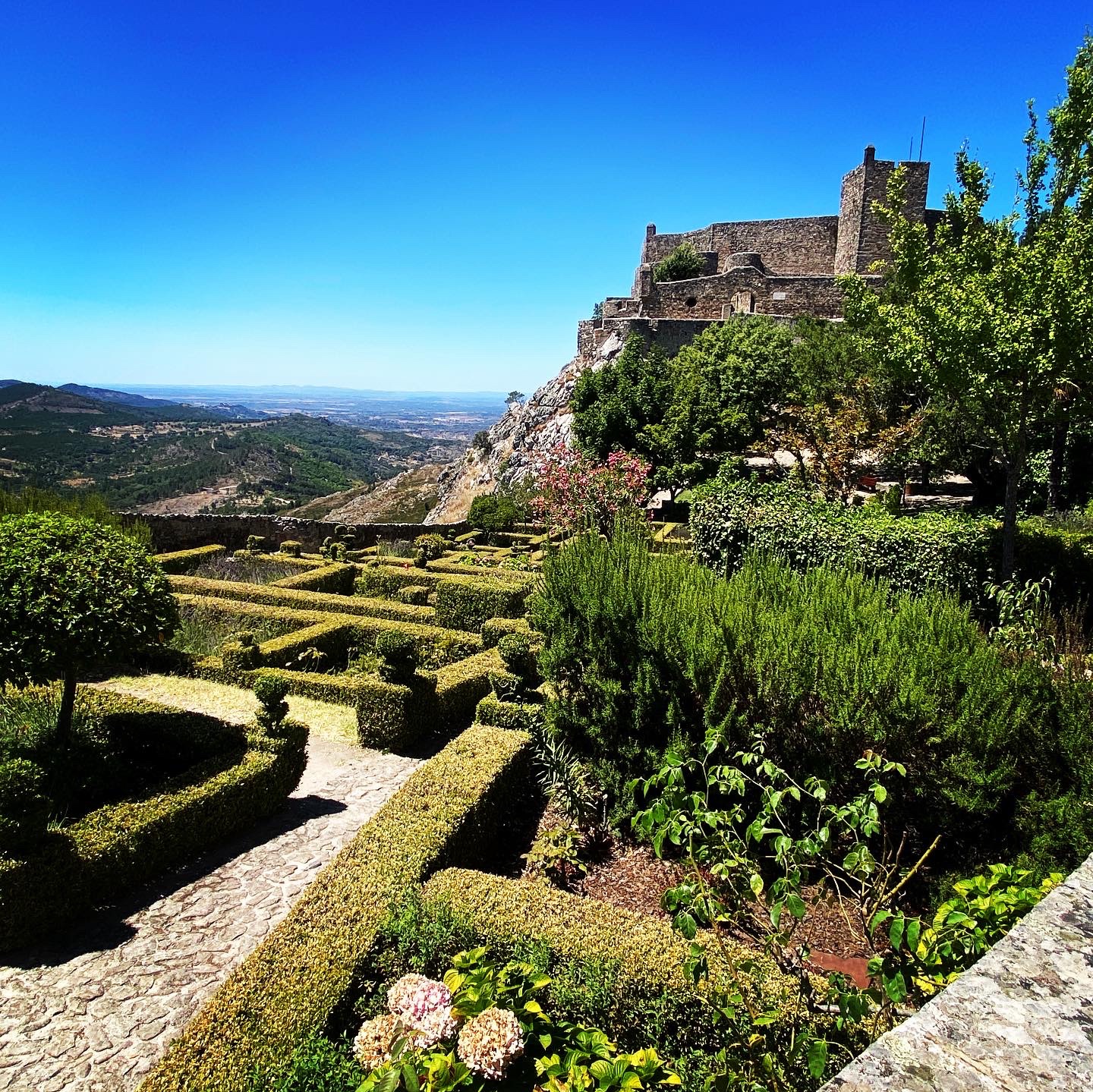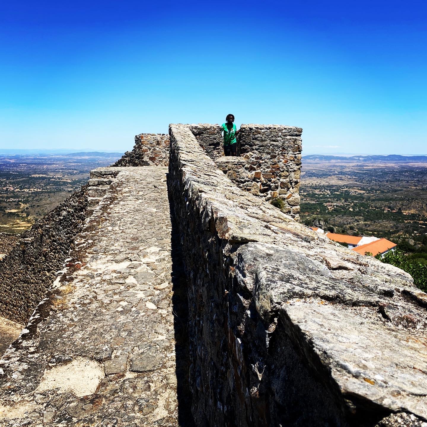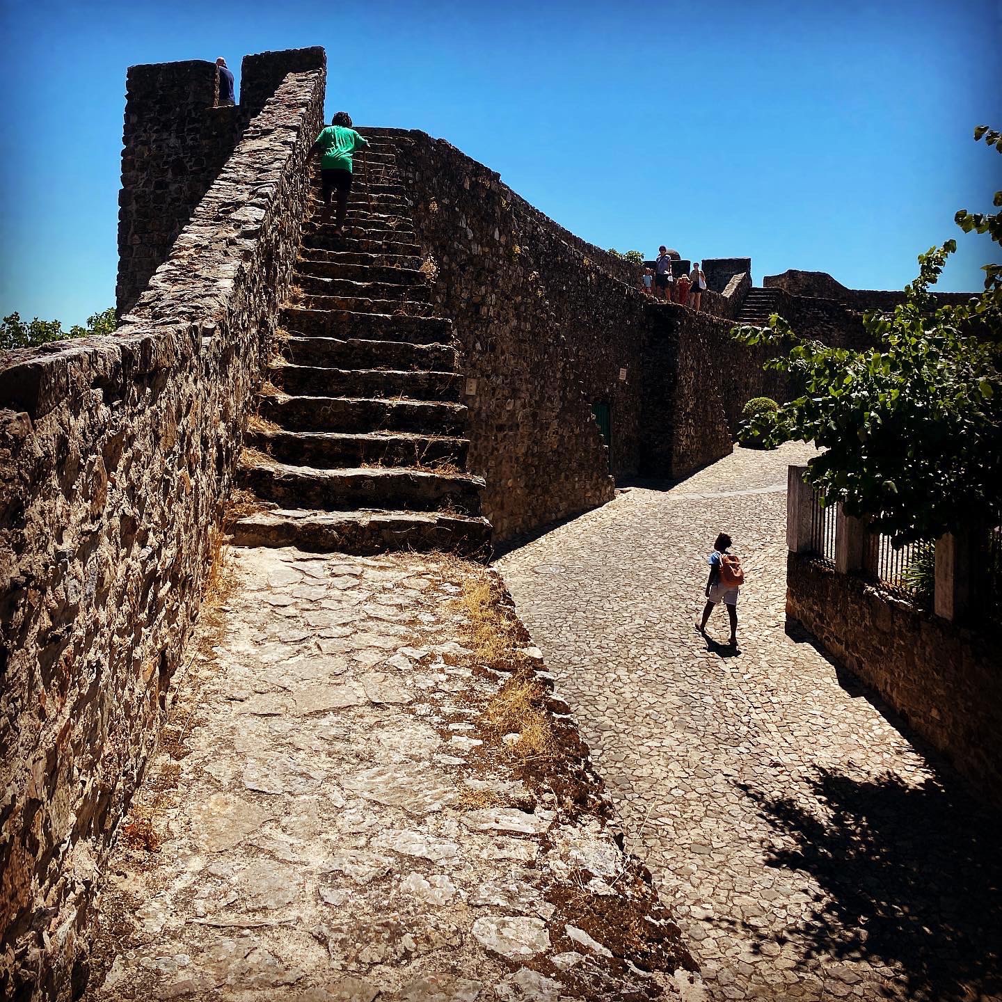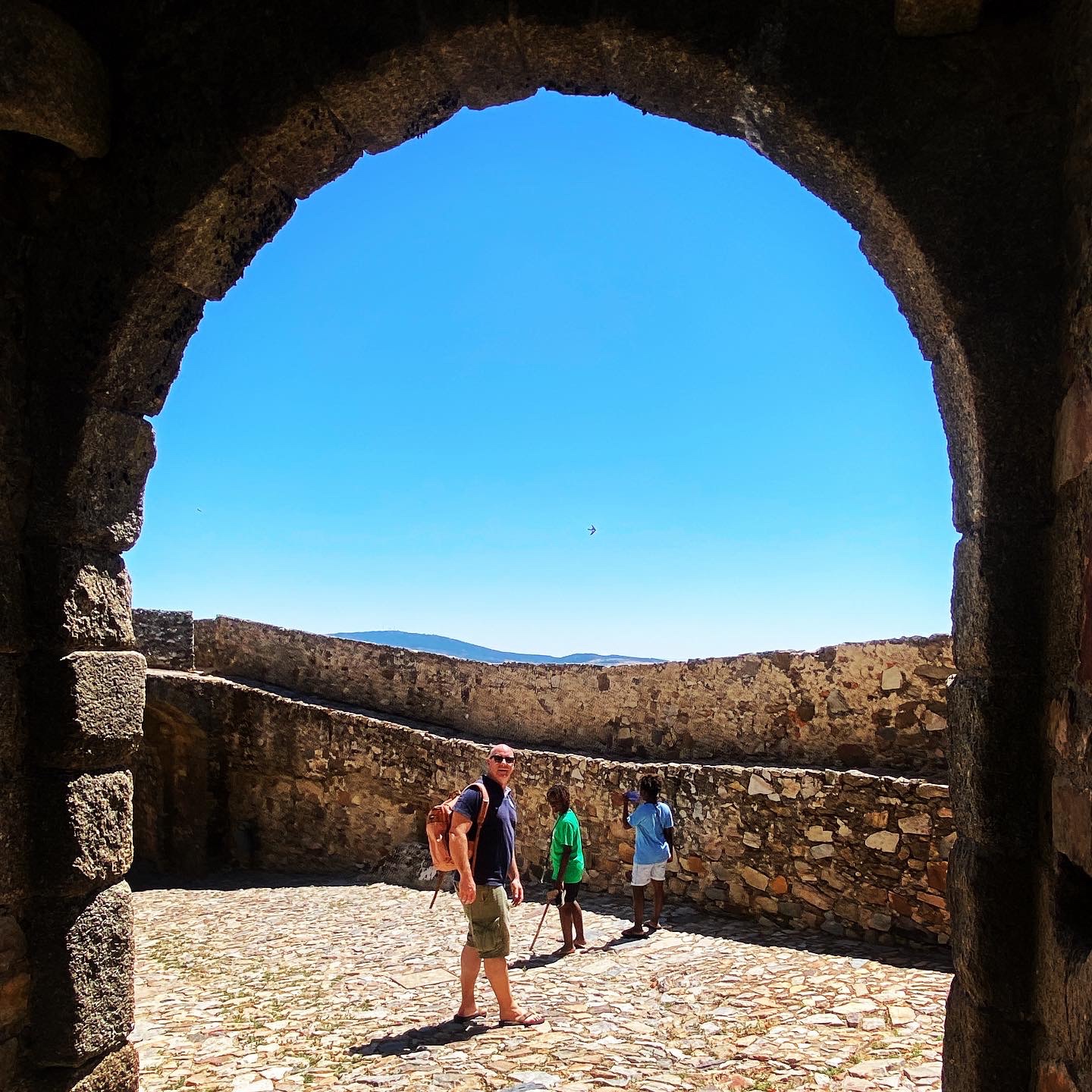 Von der Pousada in Evora fahren wir den wunderschönen Ort Marvao an. Wie ein Storchennest hoch oben, etwa 800 m über dem Meeresspiegel, liegt der kleine, idyllische Ort im São Mamede Gebirge, eingesäumt von einer alten starken Festungsmauer. Wir laufen oben auf der Mauer entlang, genießen wundervolle weite Blicke in die Ferne und haben Spanien ganz nah zu unseren Füßen. In der Burganlage herrscht reges Treiben, denn es steht ein Musikfestival an. Stühle, Traktoren, Menschen – Hektik. Über einen schmalen Einstieg gelangen wir über ein paar Treppen in die Zisterne. Von einer kleinen Plattform haben wir einen tollen Blick über den mittelalterlichen Wasserspeicher. Auch hier am Boden der Zisterne stehen die Stühle für die nahenden Konzerte. Sicher eine sehr besondere Atmosphäre hier unten.