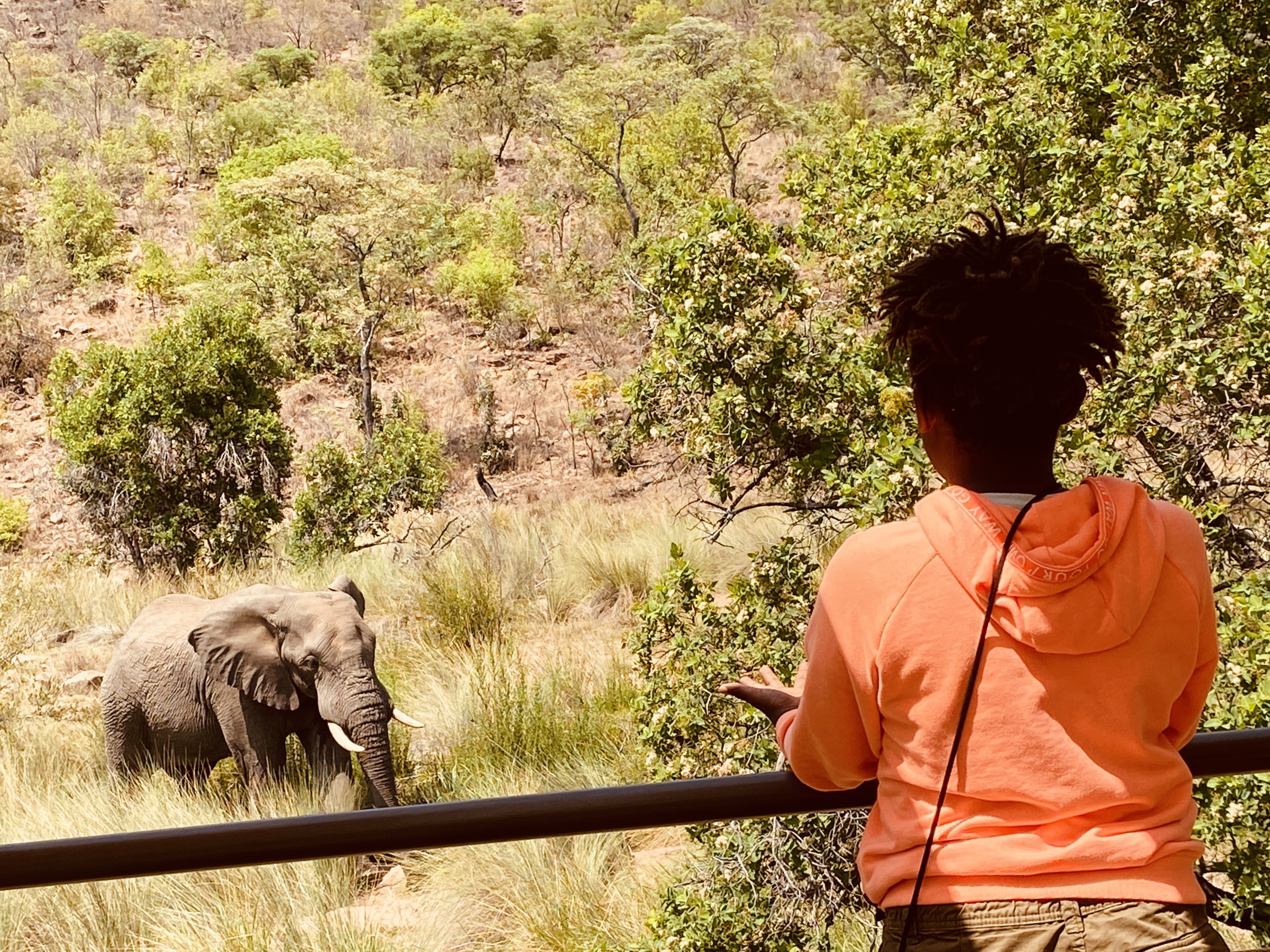 Noch ein paar Minuten die Natur-Kinoleinwand mit dem Fernglas absuchen… Noch ein tolles Frühstück mit Buschblick… und dann ab zurück zum Auto und dann auf nach Johannesburg.