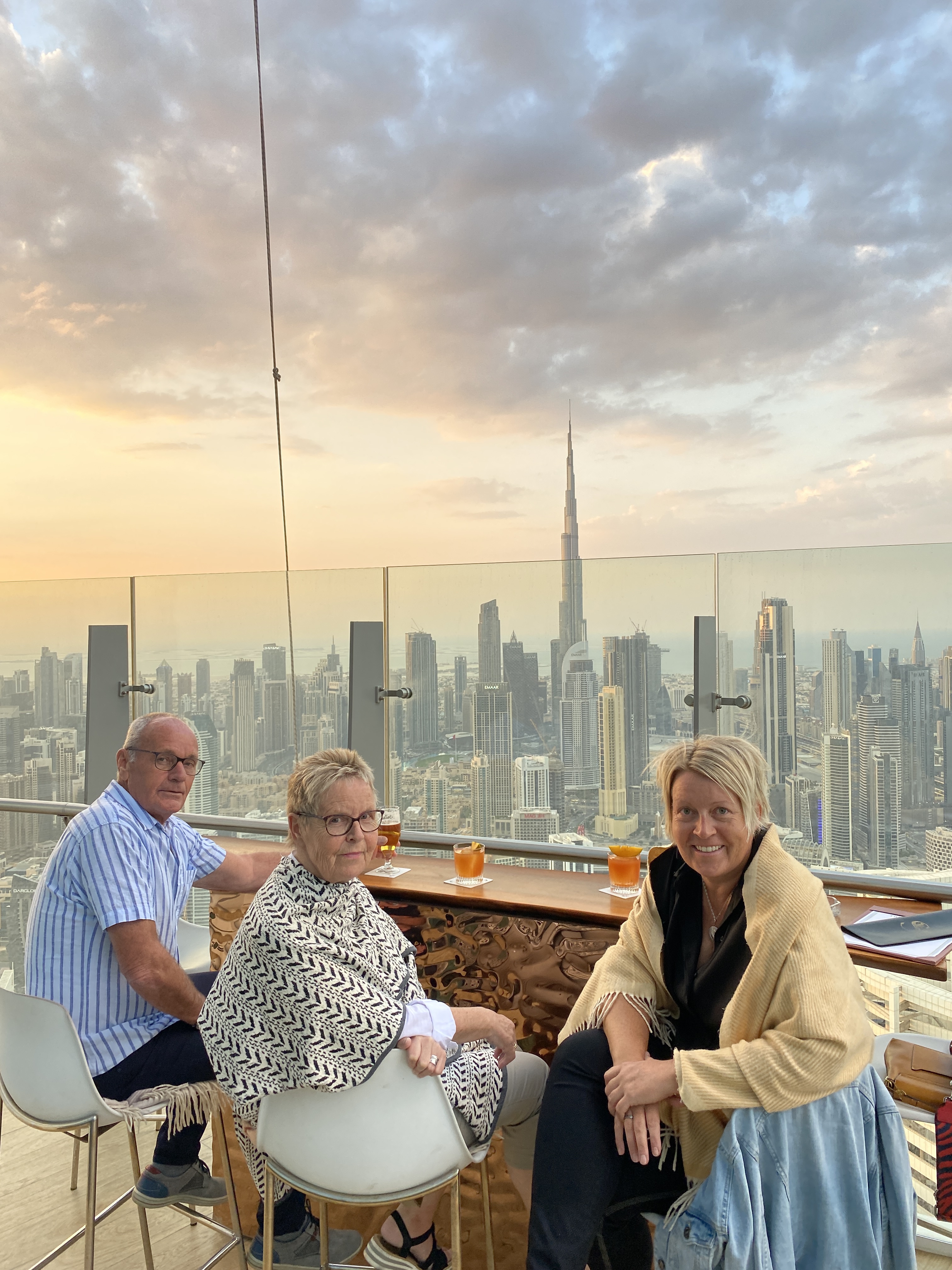 Das scheint wohl unser Ziel zu sein. Wir sehen weites trockenes Grasland, aber sonst nichts. Das Auto scheint aber zu verharren und die Buschbesucher alle in eine Richtung zu starren. Also starren auch wir. Sehen aber nichts. Langsam kommen wir näher. Sehr weit in der Ferne sehen wir Bewegung. Dank des SuperFernglases unserer netten Safari-Fahrerin erkennen wir dann das Schauspiel. Eine Gepardenmama mit zwei Kleinen liegt in der Wiese. Weit weg vom Weg. Sehr geschickt geschützt. Denn wir dürfen hier den Weg nicht verlassen und können somit leider nicht näher ranfahren. Nachdem das wirklich große Fernglas die Runde gemacht hat und jeder ausreichend Zeit hatte der kleinen Familie zuzuschauen, beschließen wir erst einmal den Sundowner einzunehmen. Die Sonne steht schon sehr tief am Himmel. Zaan findet einen unbeschreiblich schönen Ort für unseren Stopp. Leicht erhöht, hinter uns eine Ansammlung roter Felsen mit viel Grün, vor uns die weite goldene Grasprärie mit der untergehenden Sonne in der Ferne. Wieder ein Savanna in der Hand, die Sonne verschwindet showreif hinter den Wolken… Könnte ein Tag schöner ausklingen?
