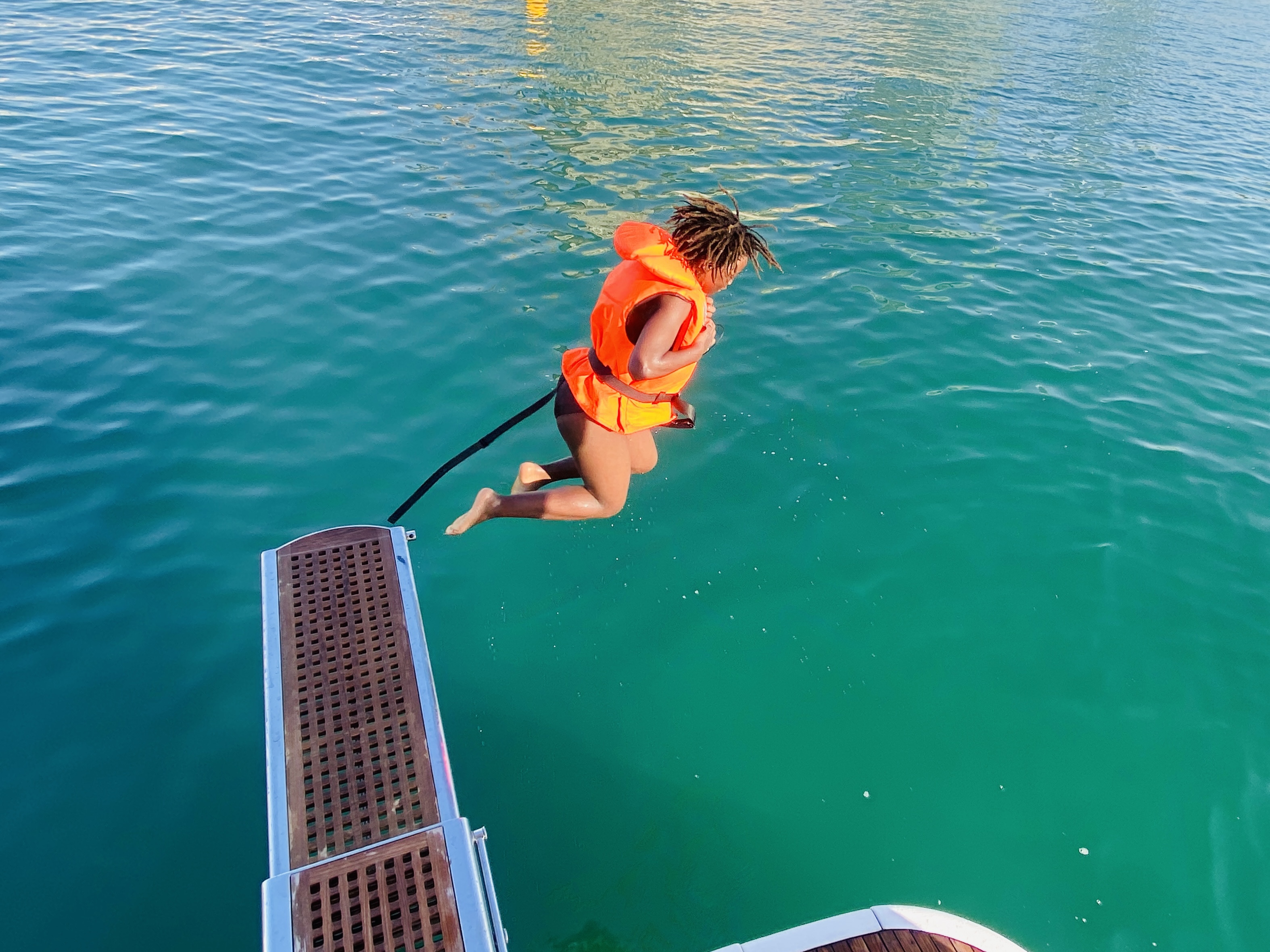 Unsere fast Teenager werden plötzlich zu verspielten, ausgelassenen Kindern. Sie haben mit zwei dicken Stöcken einen großen Spaß und toben wie Löwenkinder übermütig und auch ein wenig laut giggelnd herum. Ich hoffe mal, die Mitreisenden haben keine ruhige, romantische Sonnenuntergangsstimmung erwartet… Zu spät.