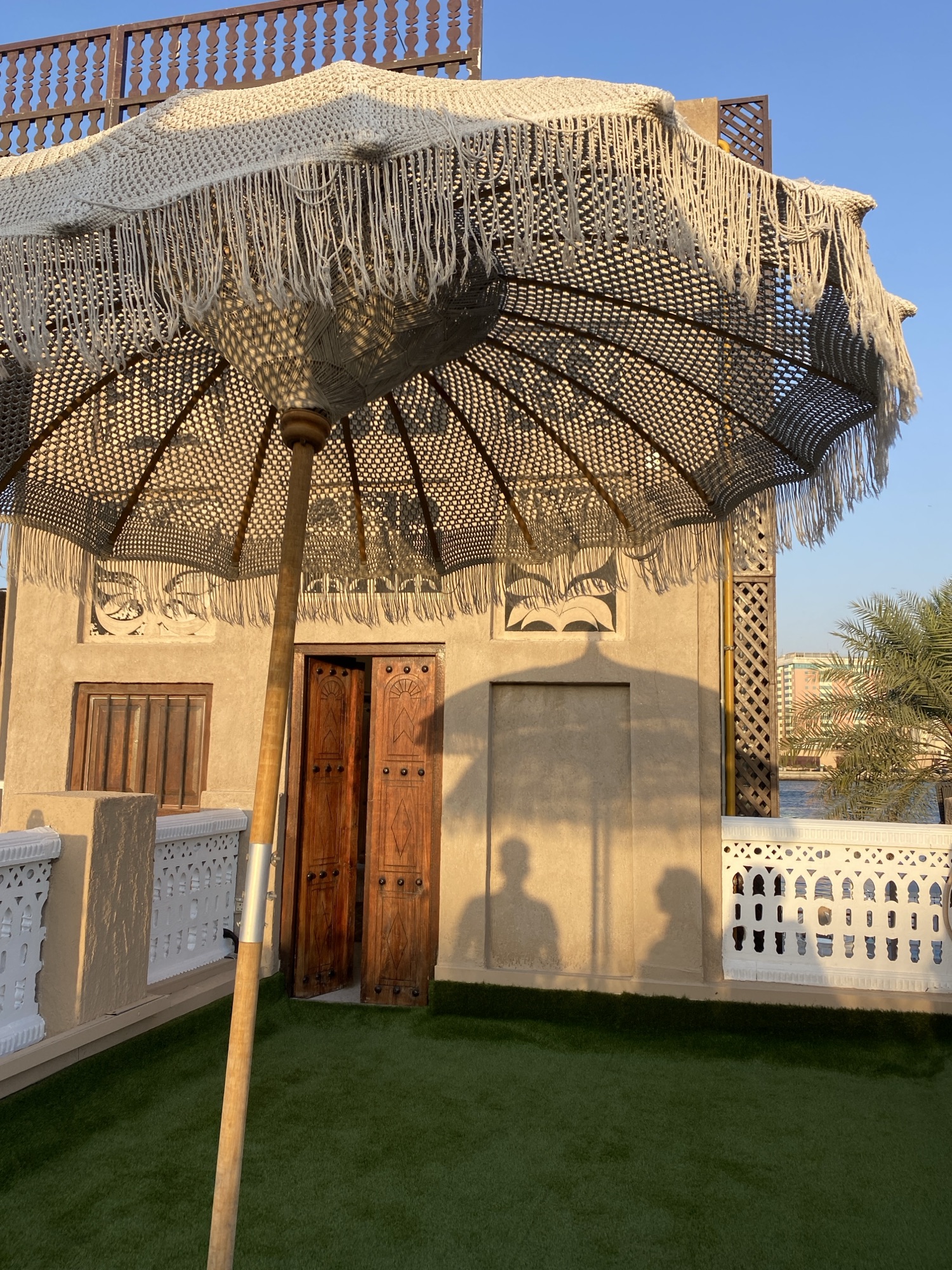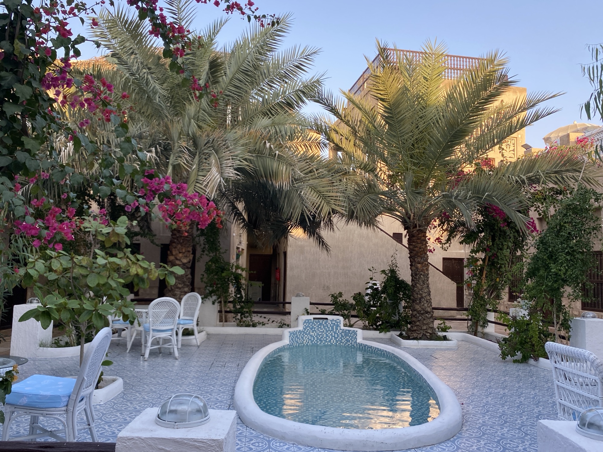 Hotelbesichtigung und Schockverliebt. Das kleine Boutique Hotel liegt im historischen Al Shindagha Viertel in Alt Dubai. In diesem Viertel liegen die Grundsteine Dubais, denn hier fing damals alles an. Damals als die Gegend noch Zentrum der Perlentaucher war, Zwischenstopp für wichtige Seefahrerrouten. In diesem Viertel steht das Geburtshaus der heutigen Herrscherfamilie Dubais.