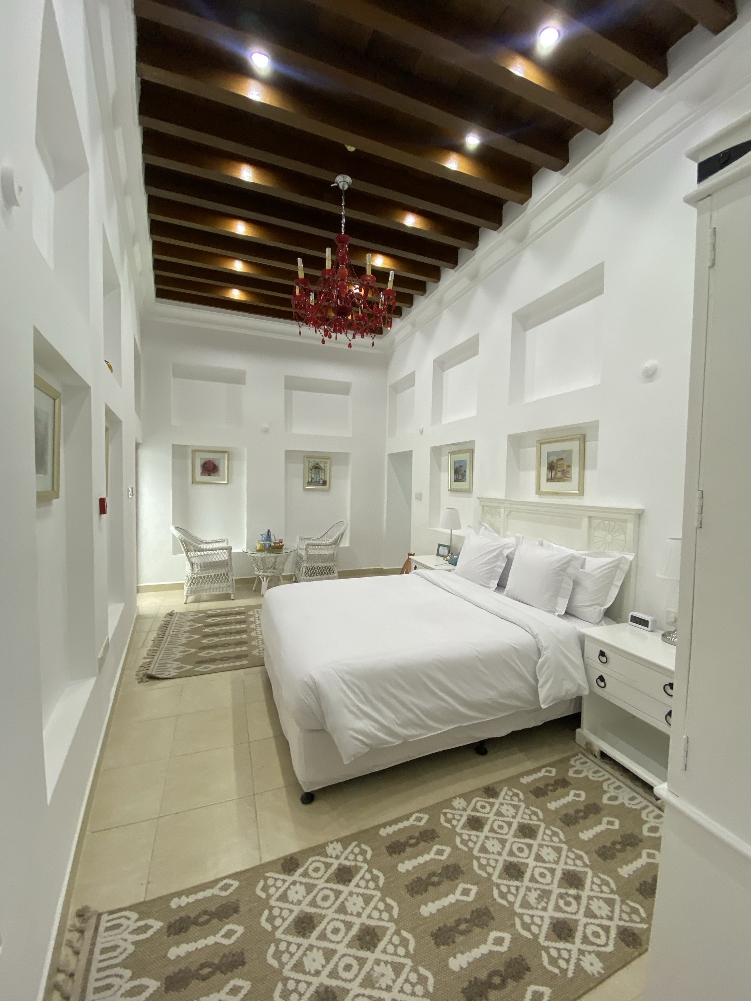 Alle Zimmer haben irgendwie ihren ganz eigenen, besonderen Charme, auch die Bäder einfach wunderschön. Manche Zimmer verfügen über einen Balkon oder sogar eine Dachterrasse, mit Blick auf den Dubai Creek. Hier kommt gleich Fernweh auf, wenn die historischen Holzboote vorbeischippern. Der Innenhof lädt zum Verweilen ein, mit einem Buch im Schatten der Palmen.