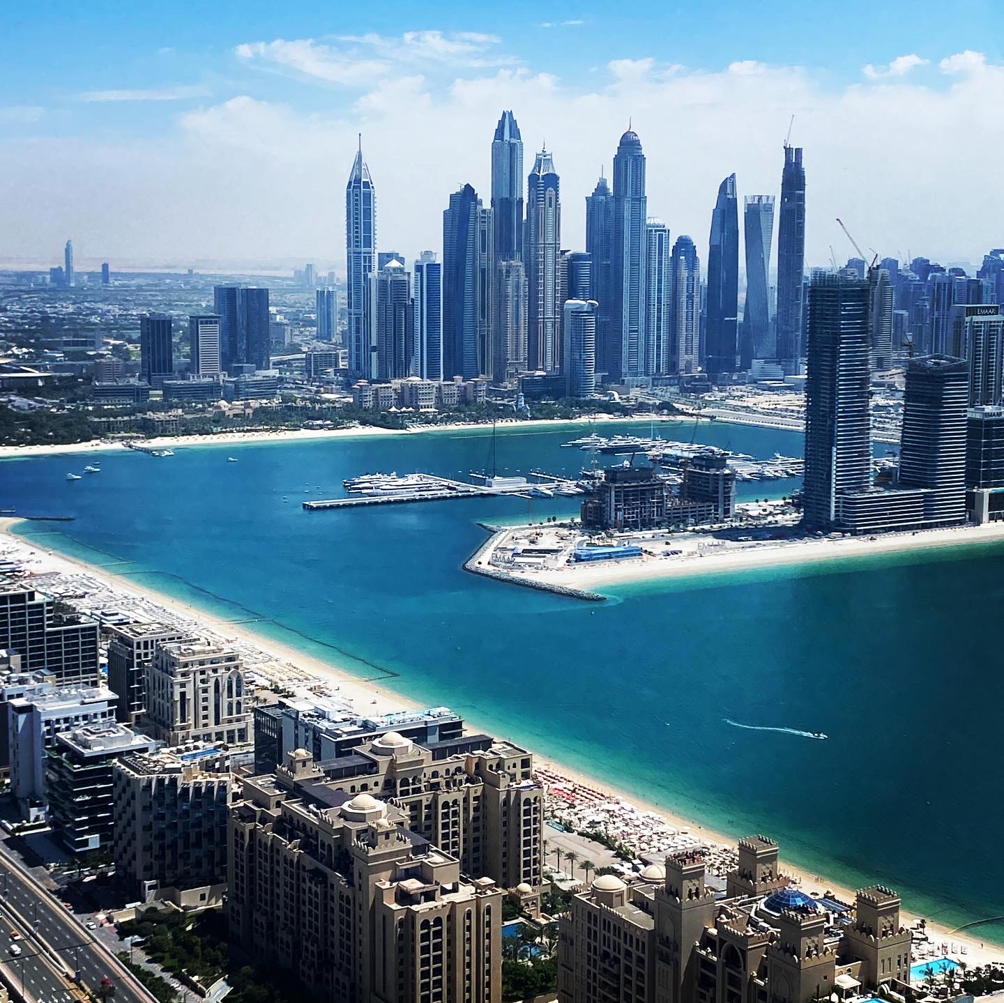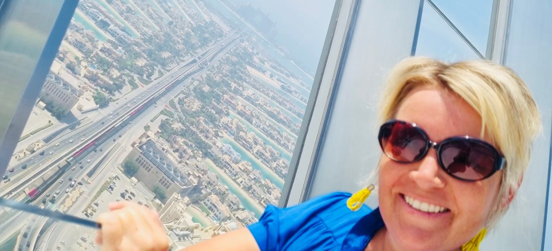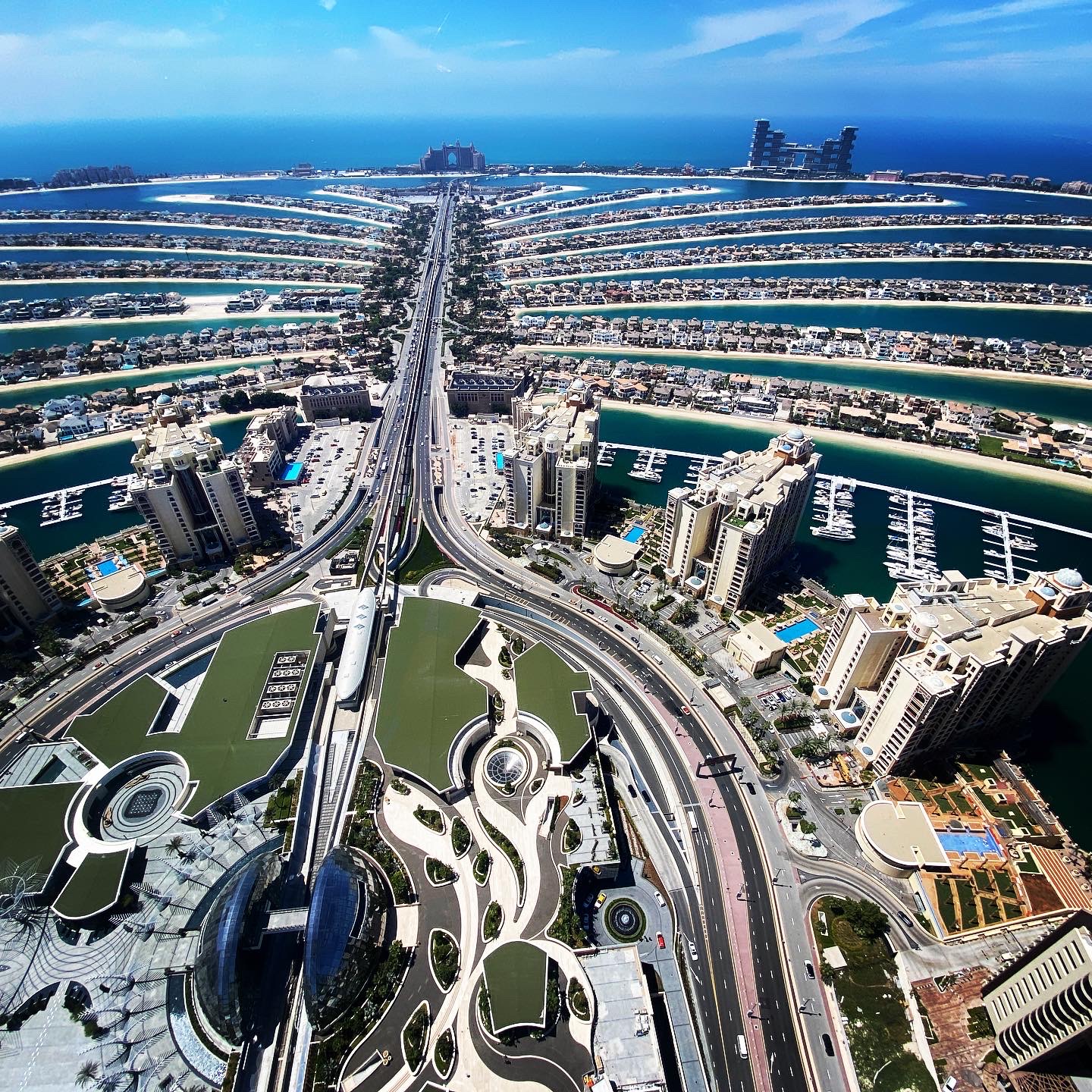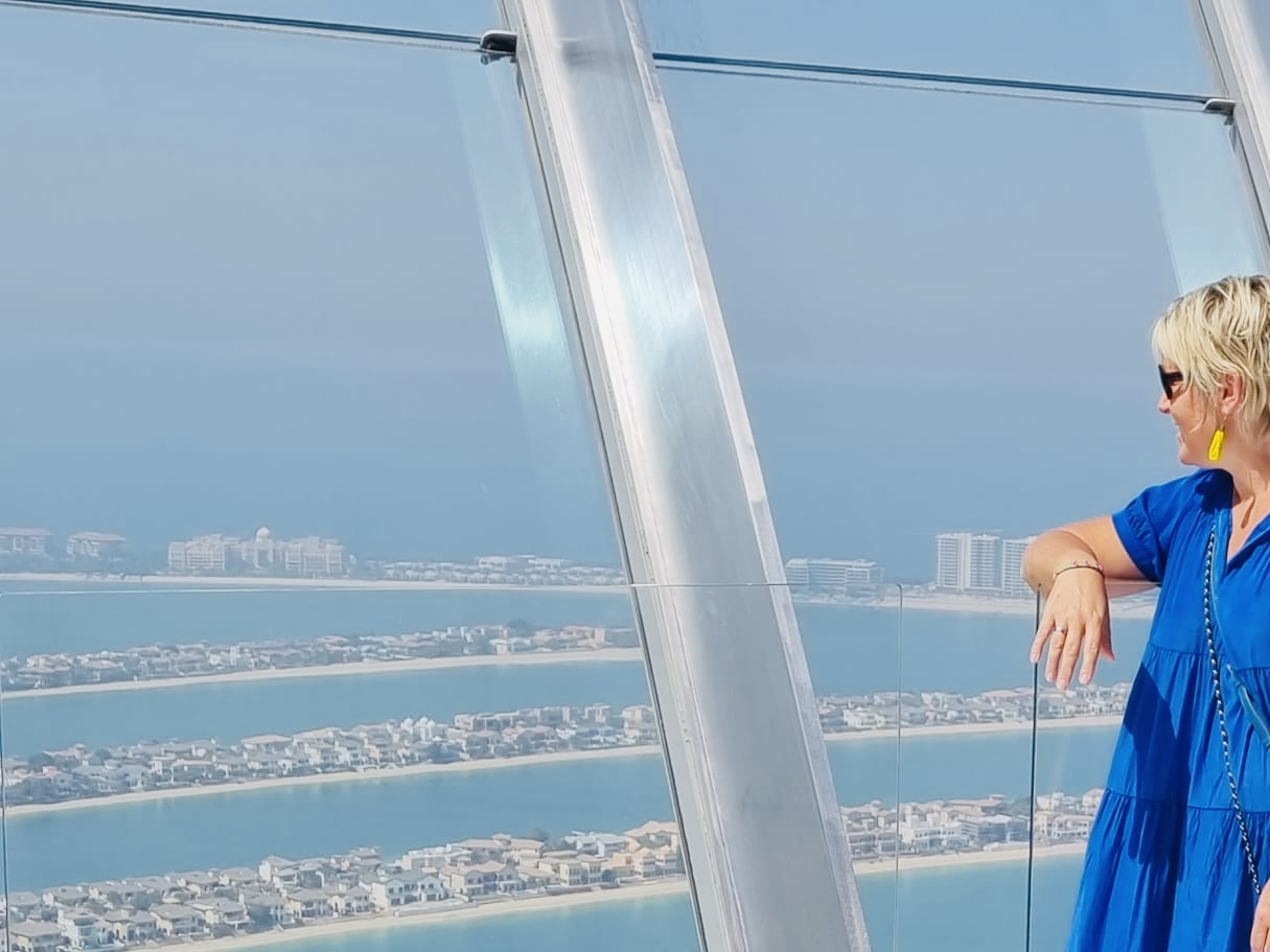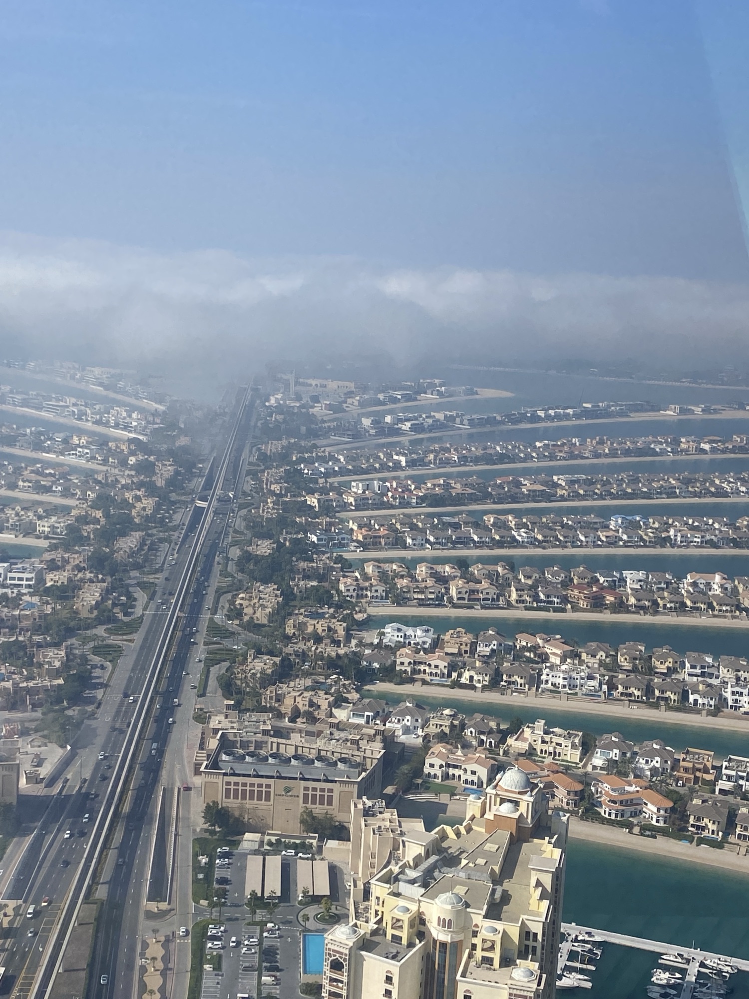 Ich buche für den The View immer den 52. Stock auf 240 m Höhe. Von hier oben hat man bei klarem Wetter einen perfekten Blick über die ganze Palme bis hin zu den Hotels auf dem äußeren Ring; auf der einen Seite schaut man bis hin zu Bluewater Island mit dem Riesenrad Ain Dubai, daneben den JBR Beach mit der Marina im Hintergrund. Auf der anderen Seite sieht man bis hin zum Burj al Arab und meist auch bis zum Burj Khalifa in Downtown Dubai.