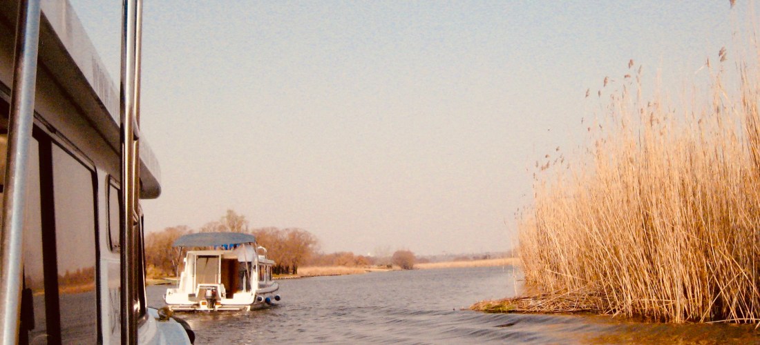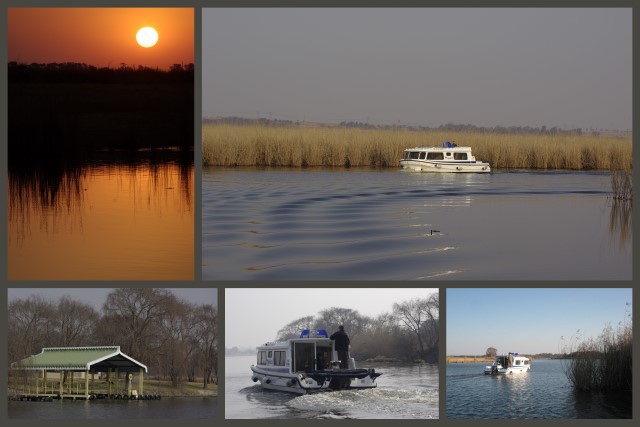 Dann rattert die Zaan mit uns los. Die Landschaft ist ganz anders als im mittleren Parkteil. Zerklüfteter, mit Wasserläufen in denen sich das Buschgras spiegelt und auch der leicht bewölkte Himmel. Zebras, mit Streifen, kreuzen ohne Zebrastreifen den Weg und Kudus heißen uns auch noch am Wegesrand willkommen.