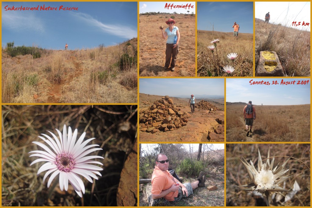 Und von dort, reisen wir weiter. Per Frischluft Offroad Transfer zurück zum Parkausgang, wo unser Auto auf uns wartet. Weiter geht es von hier Richtung Süden. Der Welgevonden Nationalpark immer zu unserer Rechten. Die Einfahrt zum East Gate ist etwas unscheinbarer, aber ohne große Probleme finden wir auch dieses. Von unterwegs haben wir bereits wieder kurz telefonisch unsere Ankunftszeit durchgegeben und siehe da, unser Safari-Transfer-Jeep steht schon zur Abholung bereit.